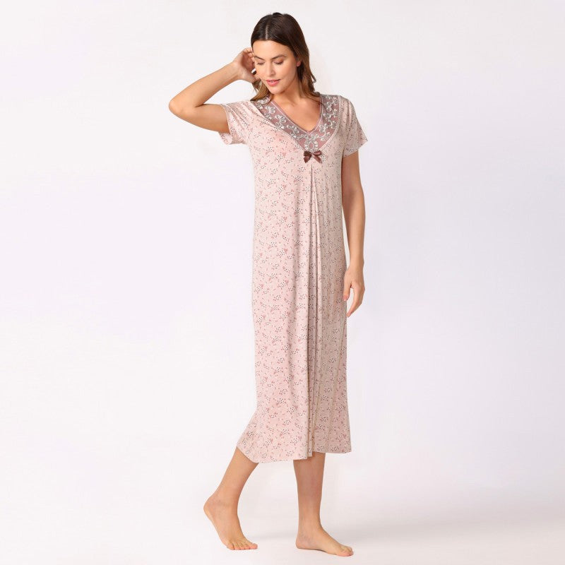 Дълга макси нощница от вискоза CE-12435. Изработена от 100% вискоза, осигуряваща мекота и изключителна пропускливост на въздуха. Дълъг модел за отличен комфорт, идеалната опция за спалнята.