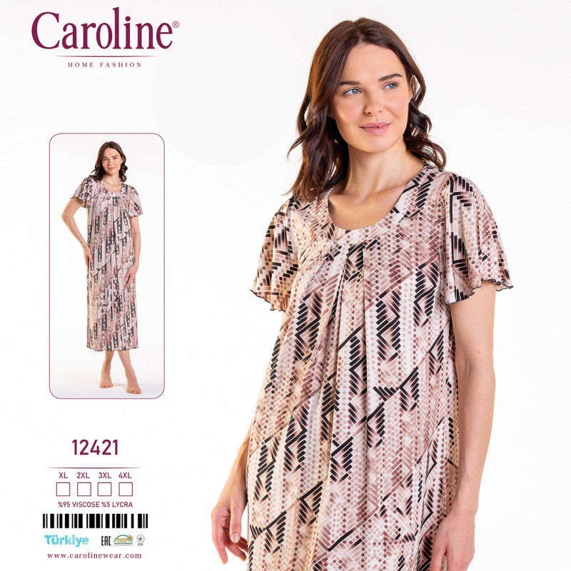 Дълга макси нощница с къс ръкав CE-12421. Мека, фина, еластична, приятна за тялото материя – вискоза.