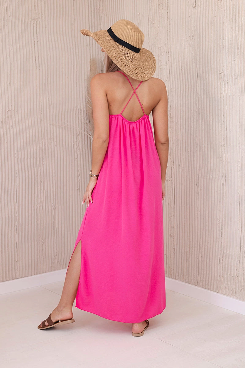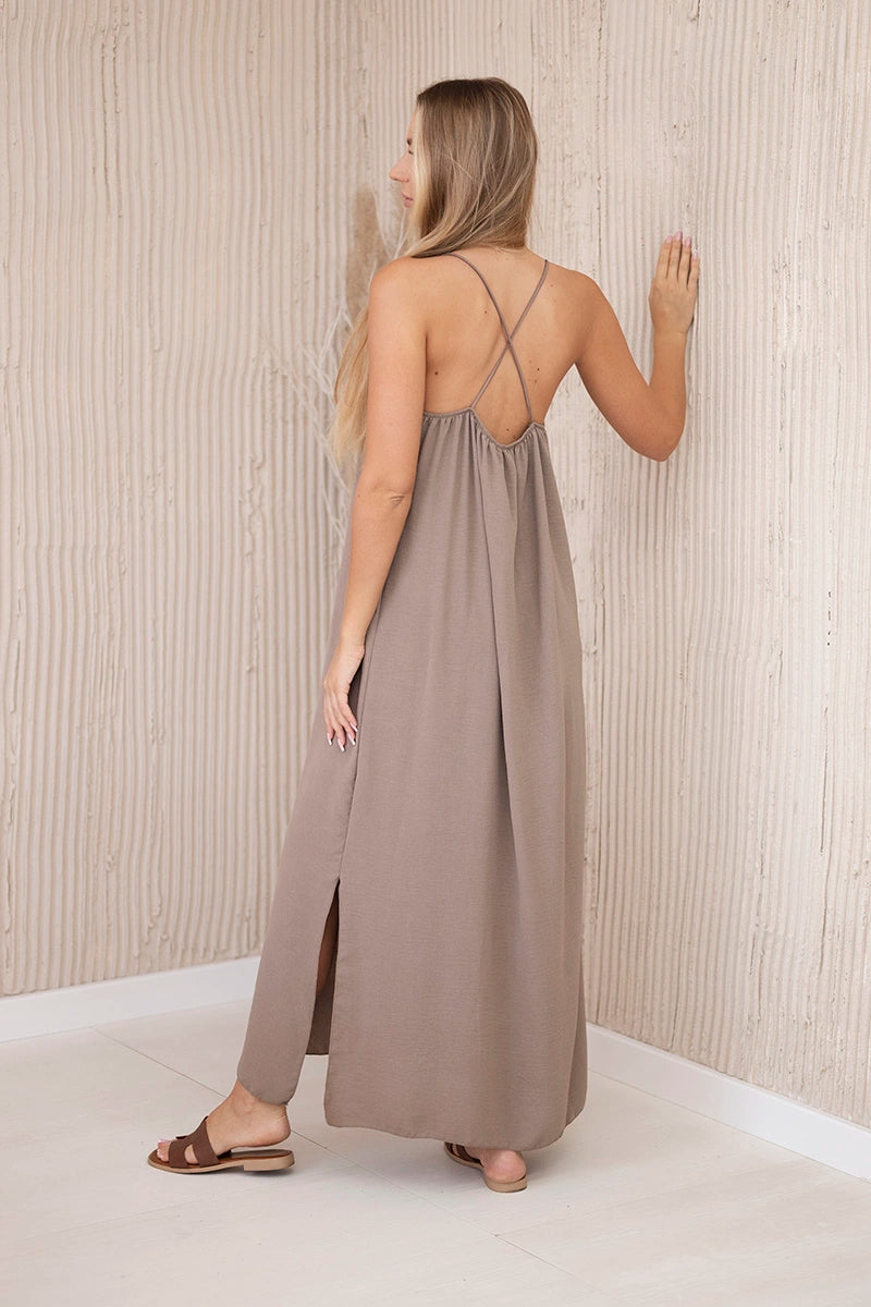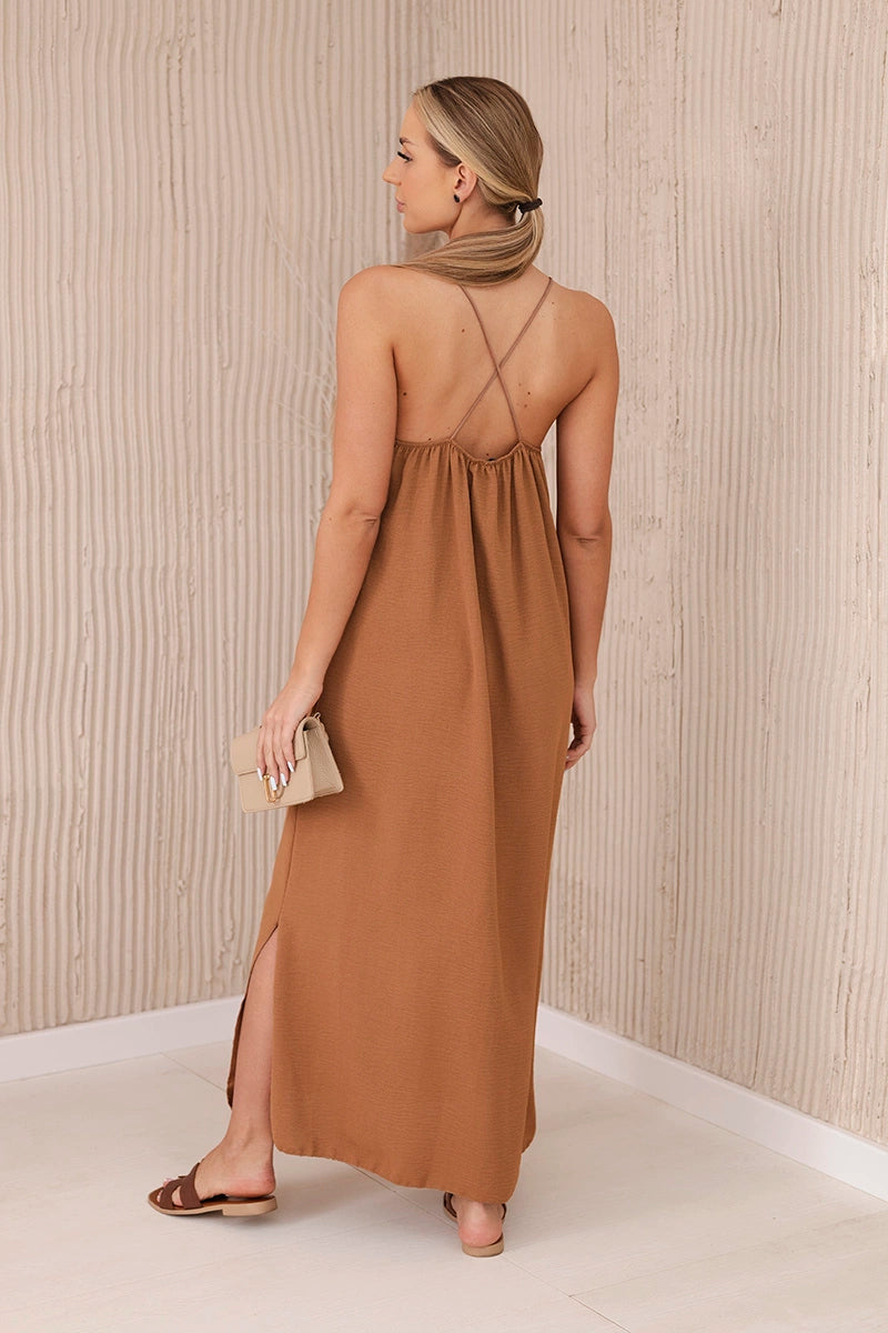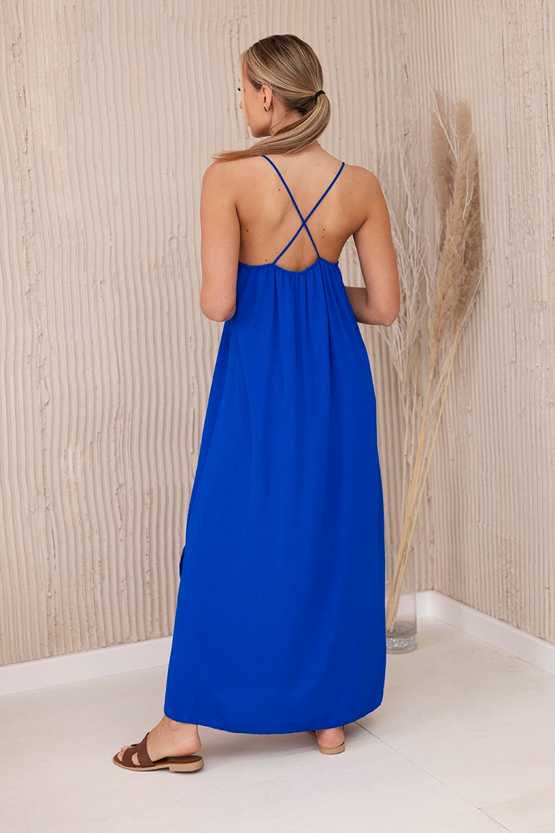 Дългата рокля с презрамки е елегантна и женствена дреха, която може да бъде идеална за много поводи. Този тип рокля е много универсална и може да се носи както за важни поводи, така и за ежедневни излизания. Тази рокля е изработена от леки материали, което я прави много удобна за носене и идеална за топлите дни. Тази рокля е популярна по целия свят, а нейният класически дизайн я прави винаги модерна и стилна. Размерът е универсален и ще бъде подходящ за жени, носещи размер S, M или L.