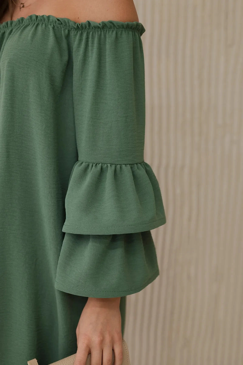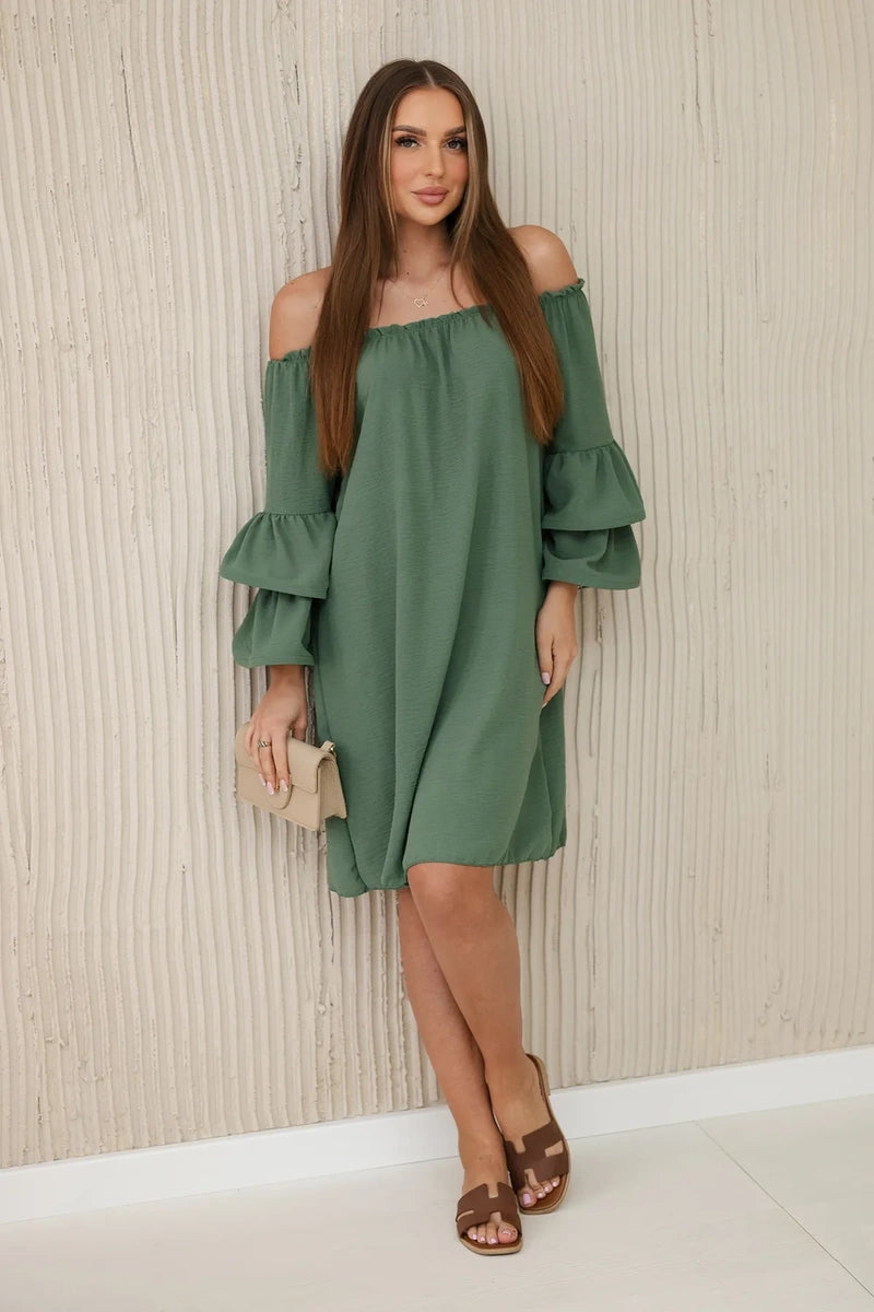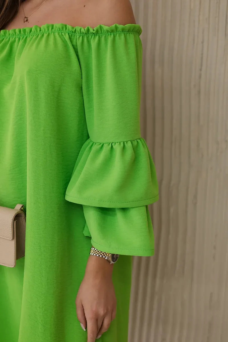 Испанската рокля с декоративни ръкави е уникално облекло, което съчетава елегантност и оригиналност. Характерно за този стил са широките ръкави, украсени с волани, които придават на роклята уникален, романтичен вид. Тази рокля е идеален вариант за много различни поводи, от церемониални събития до срещи с приятели. Декоративният ръкав й придава уникален чар и я отличава от другите рокли. Благодарение на оригиналния си дизайн, испанската рокля с декоративни ръкави е идеален избор за жени, които искат да изглеждат уникални и същевременно елегантни. Нека тази рокля се превърне в звездата на вашия гардероб, добавяйки уникален чар към всеки стайлинг. Размерът е универсален и ще бъде подходящ за жени, носещи размер S, M или L.