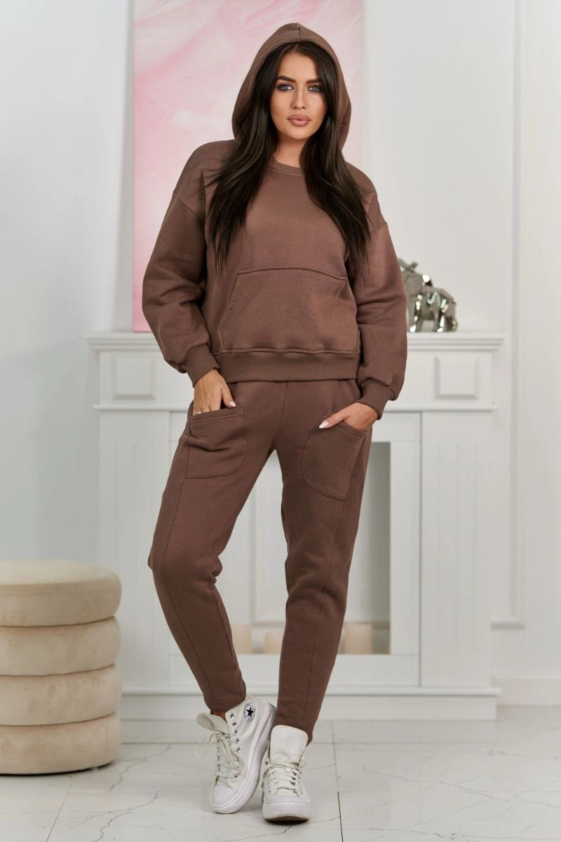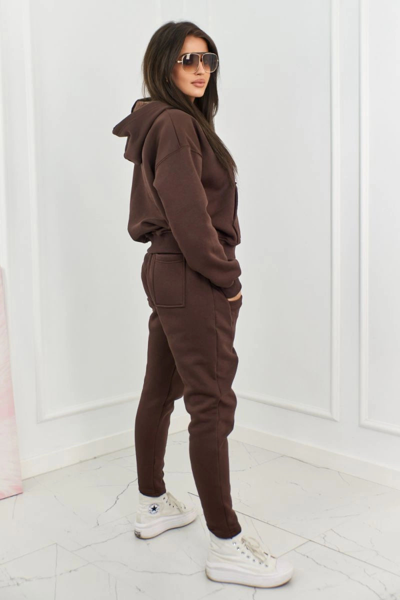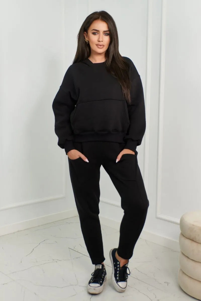 Турският комплект, състоящ се от качулка и панталон с джобове е комбинация от стил, удобство и функционалност. Худито е не само модерно, но и практично в различни ситуации. Качулката осигурява допълнителна защита от вятър и дъжд и придава характер на целия комплект. Струва си да обърнете внимание на детайли като регулируем шнур в качулката и еластични маншети на ръкавите и долната част на суичъра, които осигуряват перфектно прилягане. Панталоните с джобове са чудесно допълнение към този комплект. Страничните джобове са практични и ви позволяват да съхранявате дребни предмети като ключове или телефон. Еластична талия с възможност за регулиране осигурява комфорт и прилягане. Този турски комплект е идеално решение за различни поводи. Може да се използва по време на дейности на открито, във фитнес залата или просто през свободното време. Несъмнено съчетава естетика, комфорт и практичност, създавайки завършена визия за хора, които ценят както модата, така и функционалността в дрехите. Комплектът е изработен от изолационен материал. Размерът е универсален и ще бъде подходящ за дами с размер S, M или L.