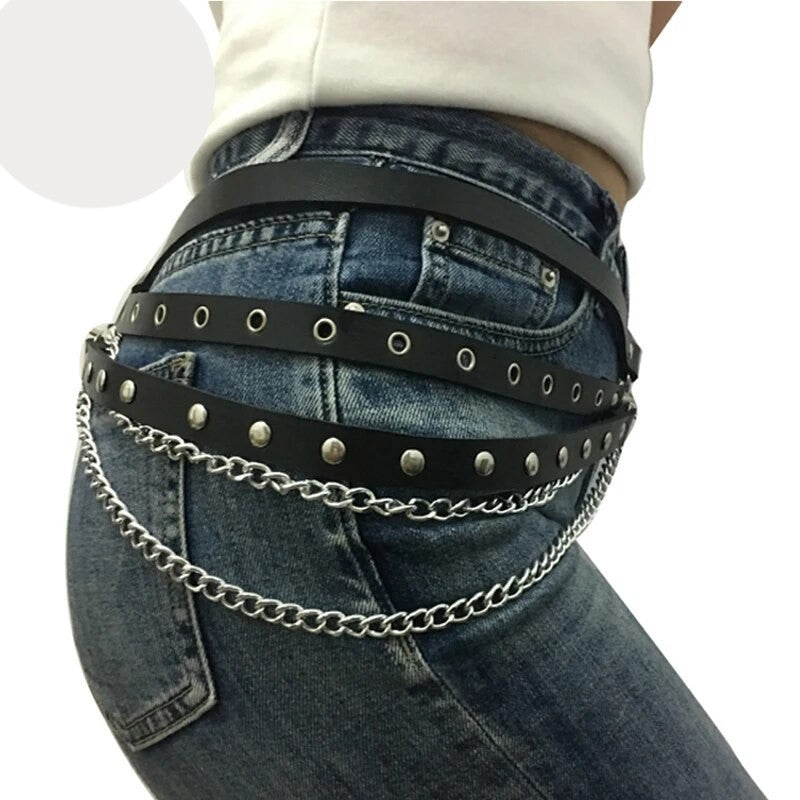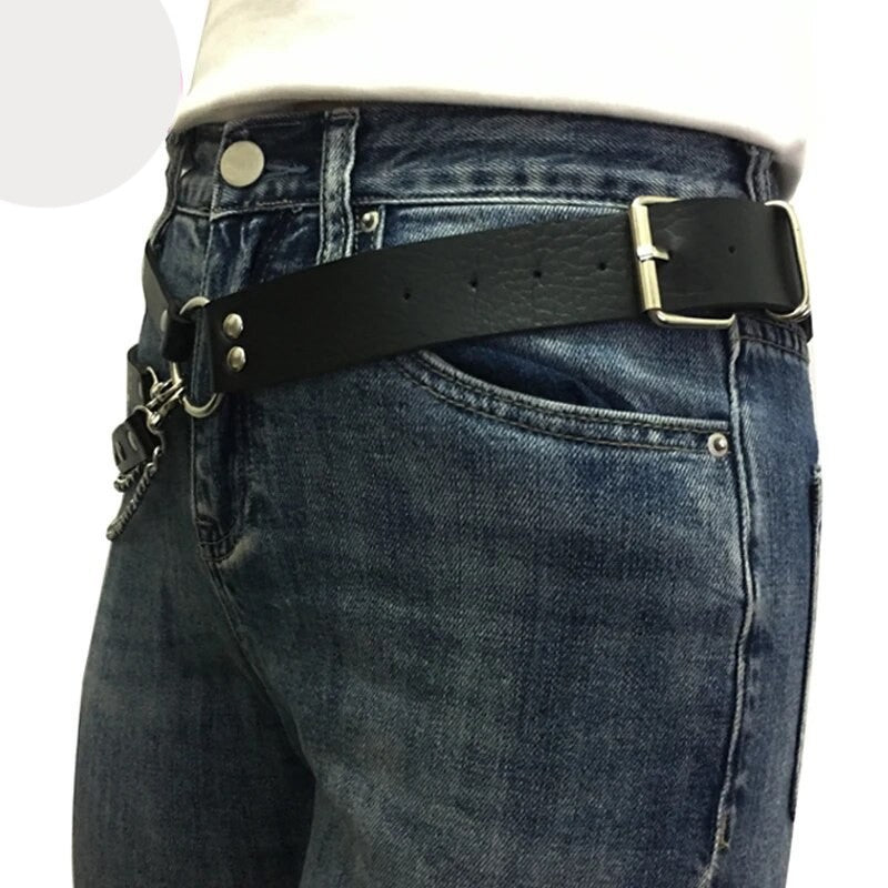 Харнес колан с капси и синджири AA-0232. Кожен харнес колан с капси и регулиране. Висококачествена изкуствена кожа. Един размер – подходящ за S, M, L.