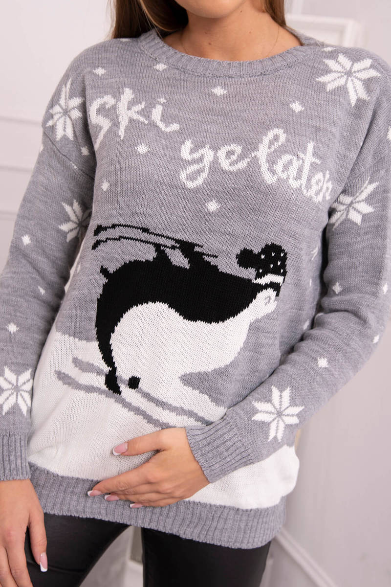 Представяме ви красив пуловер с коледен мотив. Пуловерът е с дълги ръкави. Пуловерът ще бъде и перфектен коледен подарък. Този пуловер със сигурност ще създаде коледната атмосфера за вас. Пуловерът е изработен от приятна и мека материя. Размерът е универсален и ще бъде подходящ за дами с размери M, L, XL.