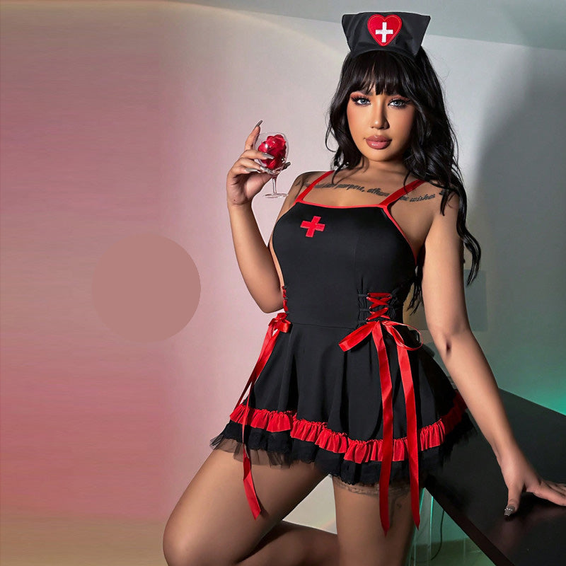 Представяме Ви нашия Еротичен бейбидол костюм на медицинска сестра, идеален за специални поводи и незабравими вечери. Този уникален комплект от три части включва: