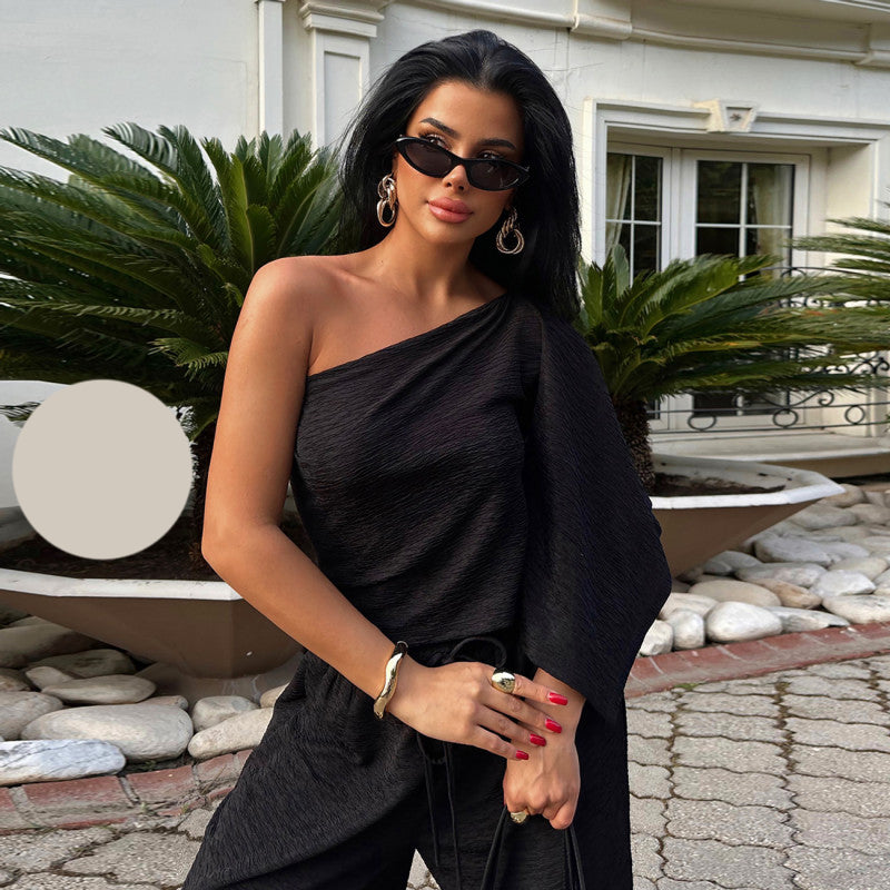 Асиметрично бюстие с едно рамо: Този дизайн придава изтънченост и уникалност на всяка комбинация.