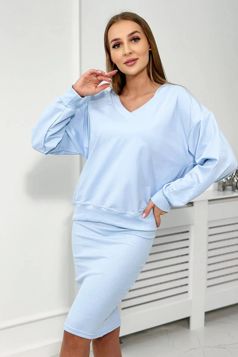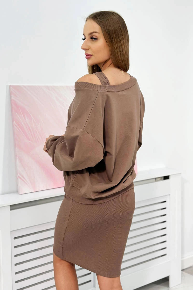 Комбинацията блуза и рокля е перфектният избор за жени, които обичат да имат много възможности за избор. Могат да се носят заедно за стилна визия за специални поводи или поотделно за малко по-небрежно ежедневно облекло. Роклята е изработена от рипсена материя, която придава елегантна и модерна визия. Роклята е с тънки презрамки. Комплектът е изработен с внимание към детайла. Комплект, състоящ се от блуза и раирана рокля с презрамки е чудесен вариант за жени, които търсят удобно, елегантно и модерно облекло. Със сигурност ще подхожда на много различни поводи и стилове, а високото качество на изработка гарантира, че ще служи много сезони. Размерът е универсален и ще бъде подходящ за дами с размер S, M или L.