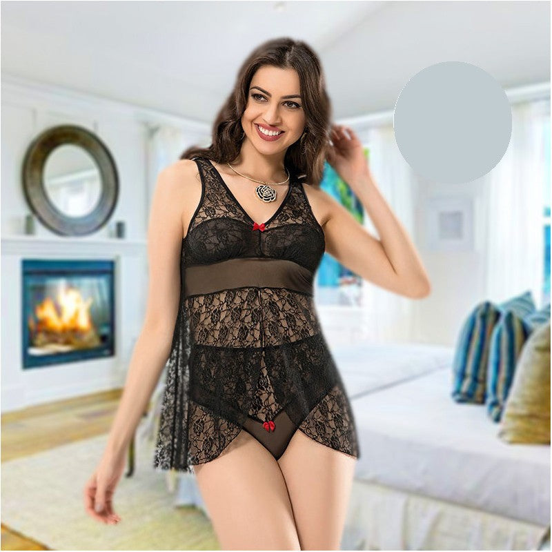Комплект от къса дантелена нощница с бикини M-1036.