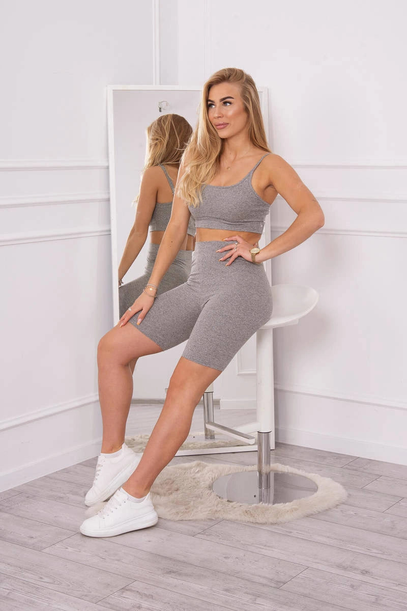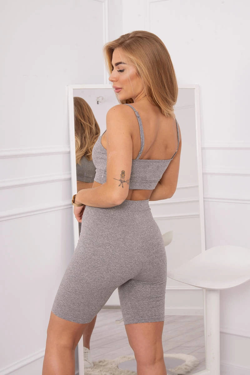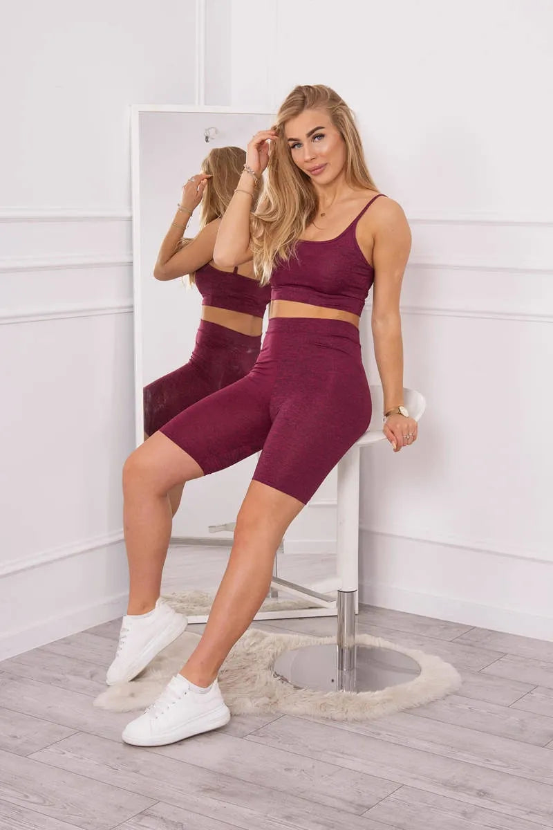 Представяме ви удобен спортен комплект. Благодарение на гъвкавия материал, те идеално прилепват към тялото и в същото време не ограничават движенията. Комплектът включва горнище и клин. Топ с регулируеми презрамки, панталон с висока талия. Комплектът е изработен от висококачествен материал. Размерът е универсален и ще бъде подходящ за дами, носещи размери S, M или L.