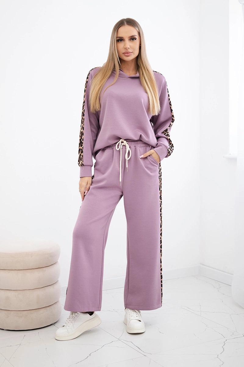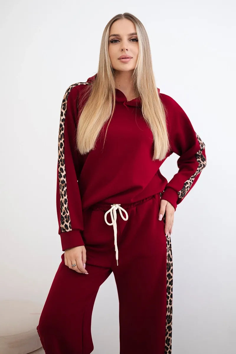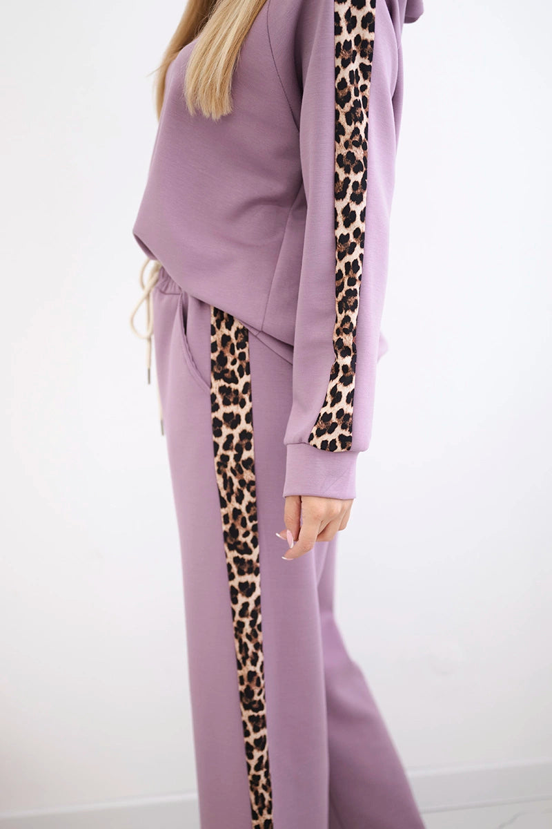 Комплектът от вискоза с леопардово райе е стилно и удобно предложение за любителите на модерните акценти. Худито осигурява комфорт и свобода, като идеално предпазва от студа, а панталонът с джобове и връзката на тала гарантира удобно прилягане. Леопардовите райета придават изразителност и модерен характер на комплекта, подчертавайки модната визия. Изработен от мека вискоза, комплектът ще работи чудесно както за ежедневието, така и за по-ежедневния стил. Размерът е универсален и става за жени с размер S, M или L.