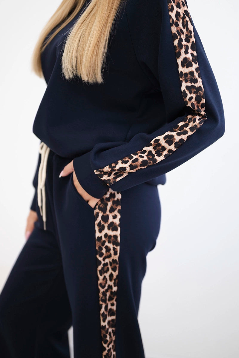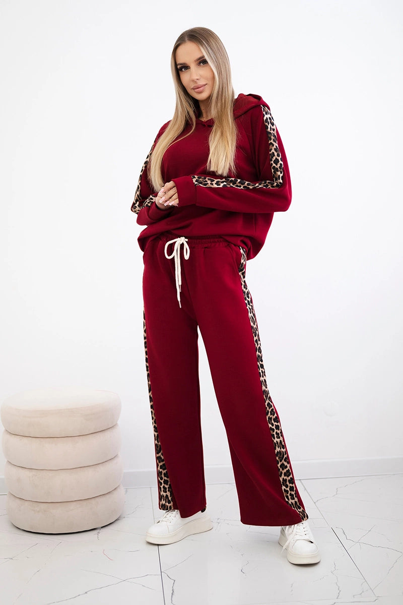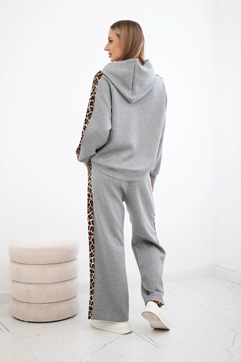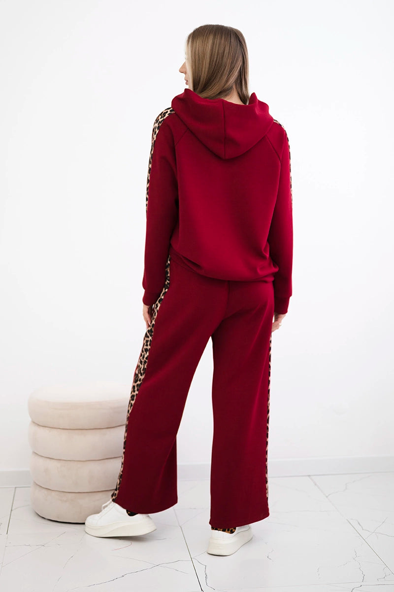 Комплектът от вискоза с леопардово райе е стилно и удобно предложение за любителите на модерните акценти. Худито осигурява комфорт и свобода, като идеално предпазва от студа, а панталонът с джобове и връзката на тала гарантира удобно прилягане. Леопардовите райета придават изразителност и модерен характер на комплекта, подчертавайки модната визия. Изработен от мека вискоза, комплектът ще работи чудесно както за ежедневието, така и за по-ежедневния стил. Размерът е универсален и става за жени с размер S, M или L.