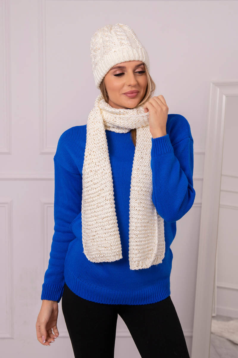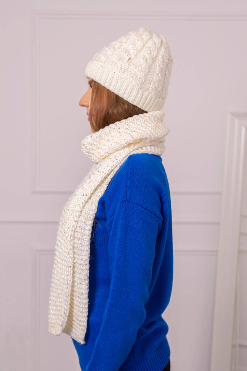 Предлагаме ви топъл комплект, състоящ се от шапка и шал. Комплектът се отличава с атрактивен външен вид и солидна изработка. Много красив десен ще направи комплекта модерен и практичен аксесоар за много сезони. Размерът на шапката и шала е универсален.