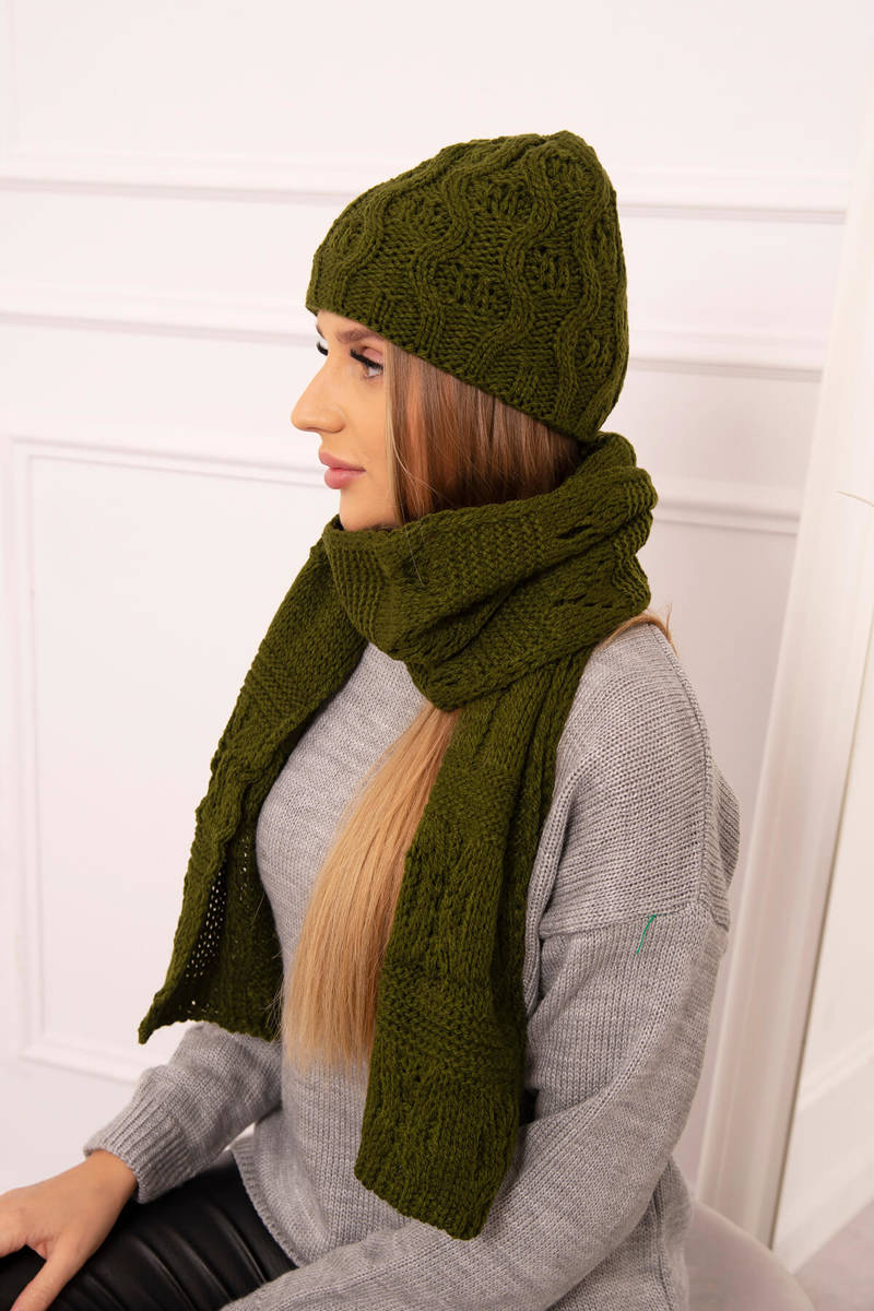 Предлагаме ви топъл комплект, състоящ се от шапка и шал. Комплектът се отличава с атрактивен външен вид и солидна изработка. Много красив десен ще направи комплекта модерен и практичен аксесоар за много сезони. Размерът на шапката и шала е универсален.
