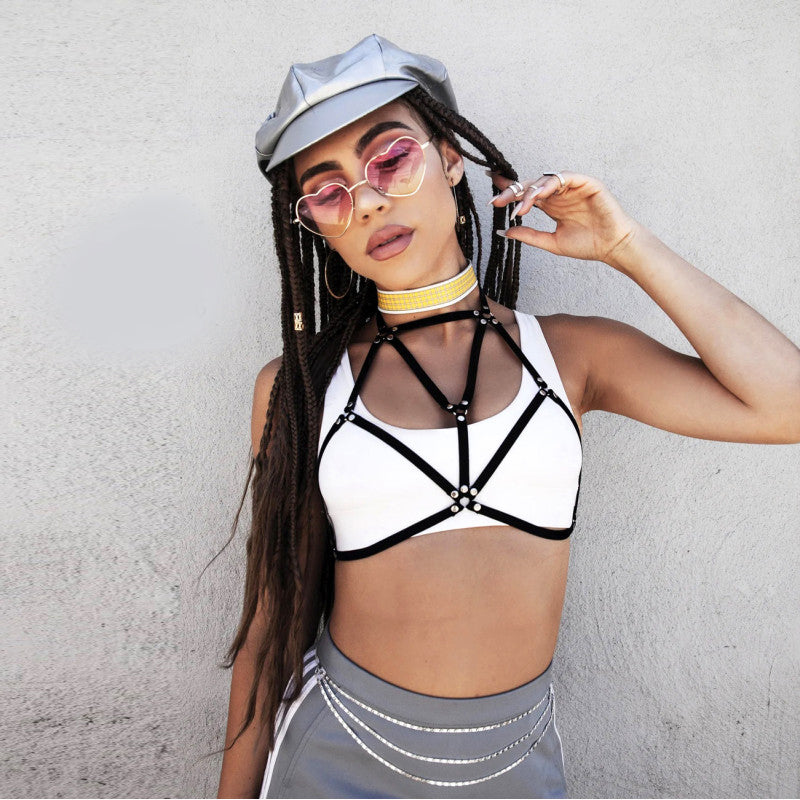 Търсите стилен аксесоар за завършване на идеалната визия? Представяме Ви екзотичен черен кожен харнес горна част, създаден за дами с изтънчен вкус. Той е изработен от висококачествена еко кожа, приятна на допир и нежна към кожата.