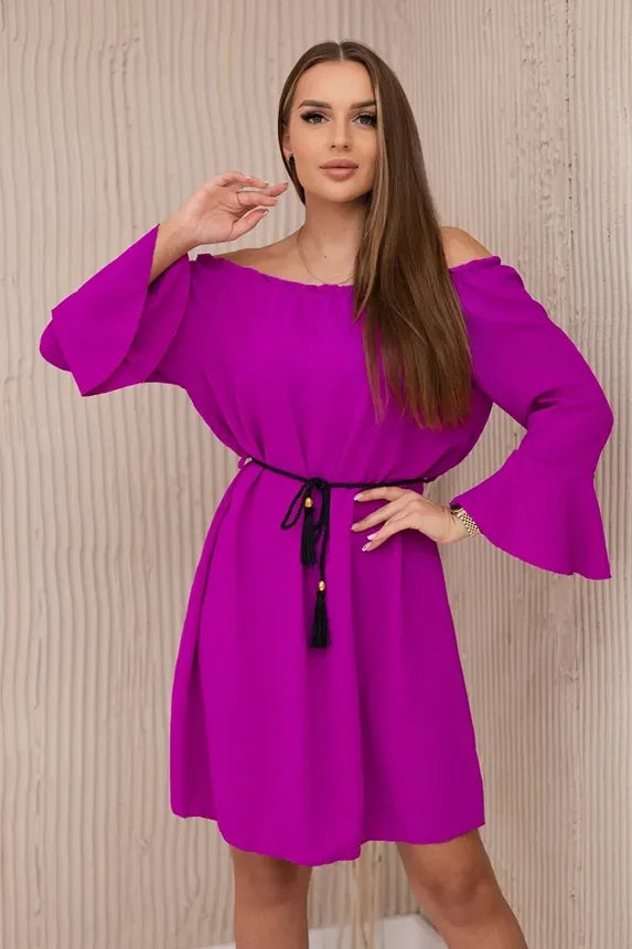Рокля, завързана на талията с шнур е модерен и практичен елемент от облеклото, който подчертава фигурата и придава уникален характер на роклята. Връзката на талията ви позволява да регулирате обиколката, което ви позволява да коригирате роклята според индивидуалните си предпочитания и подчертава талията, като придава женственост и елегантност на целия стайлинг. Това е удобен и универсален вариант за различни поводи, който същевременно осигурява свобода на движение и удобство при носене. Размерът е универсален и ще бъде подходящ за жени, носещи размер S, M или L.