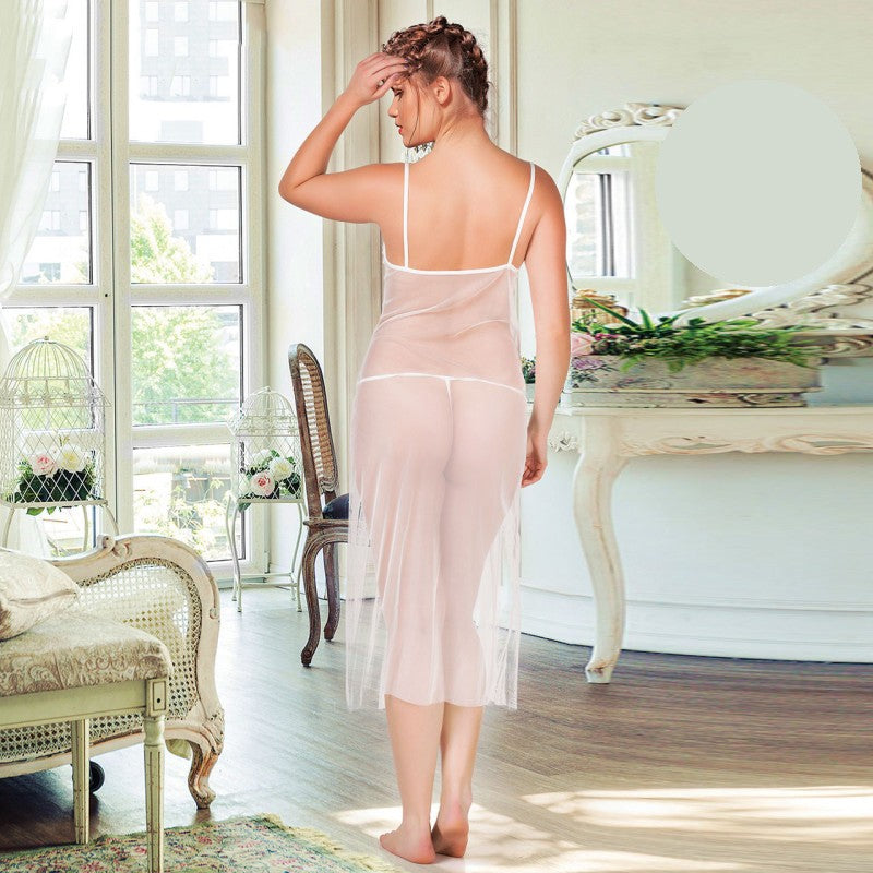 Макси дантелена нощница с прашки ME-06005. Дамски комплект от ефирна нощница и прашки.
