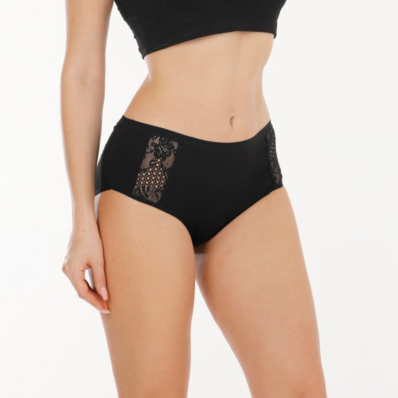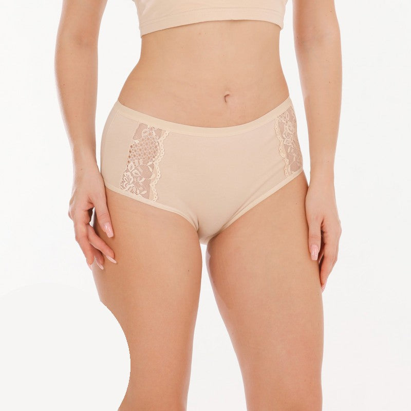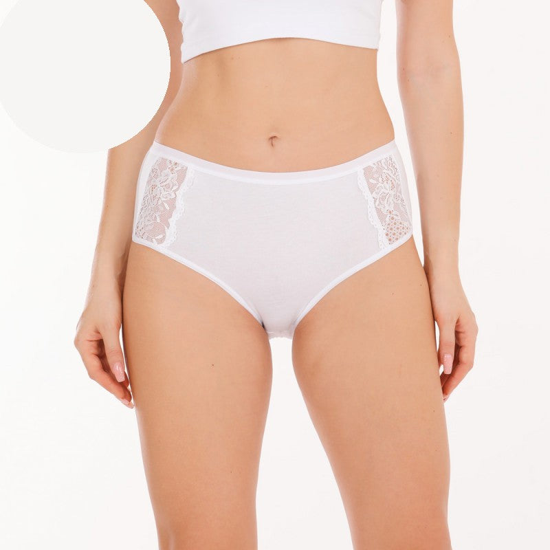 Макси памучни бикини с висока талия B-11615. Памучни бикини с дантелена декорация и висока талия.