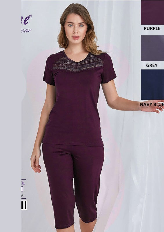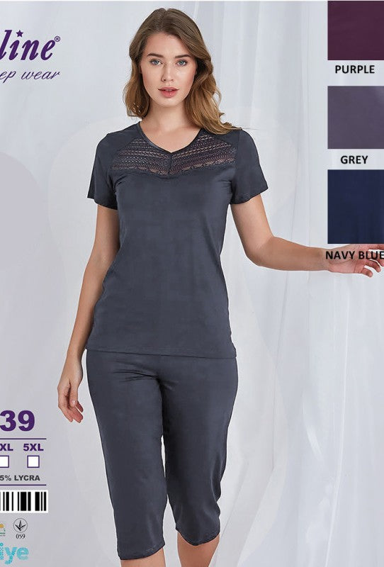Макси пижама от вискоза с къс ръкав 98039. Мека, фина, еластична, приятна за тялото материя – вискоза. Домашно облекло в 2 части с туника и 7/8 бермуди.