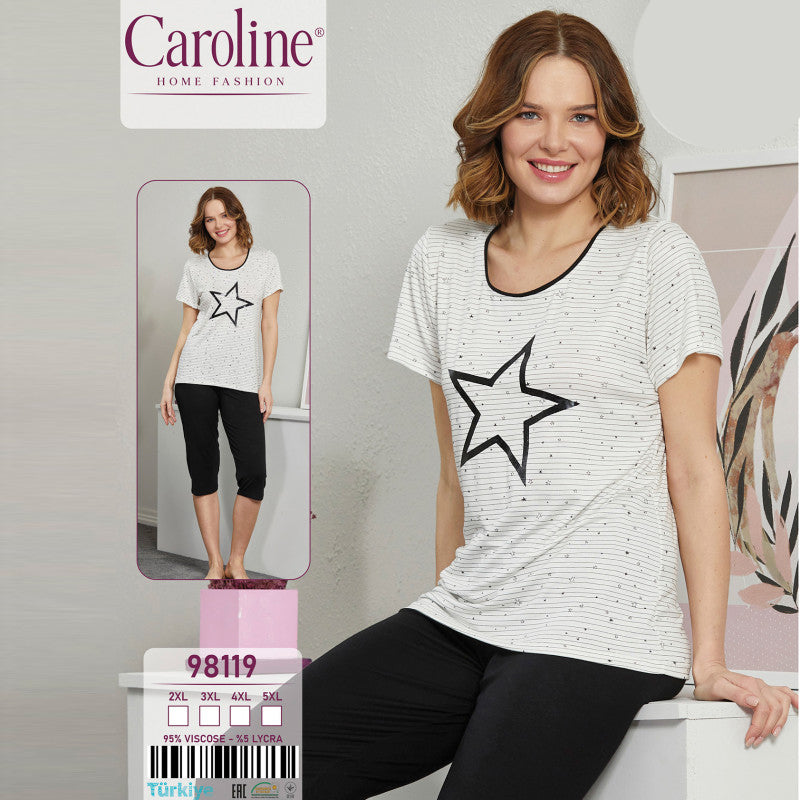 Макси пижама с къс ръкав и 3/4 панталон 98119. Комплект от вискоза – мека и фина , приятна за тялото материя. Комбинация от блуза с къс ръкав и 3/4 бермуди.