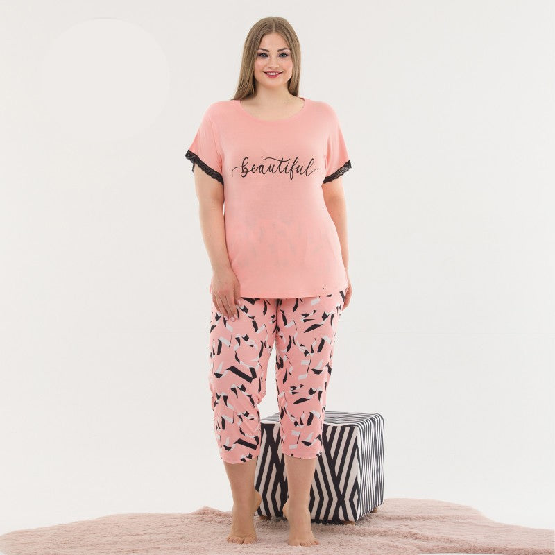 Макси пижама с къс ръкав и 7/8 клин 10601. Дамски комплект от вискоза – мека, приятна за тялото материя. Модел от блуза с къс ръкав и дантела и 7/8 клин с ластик.
