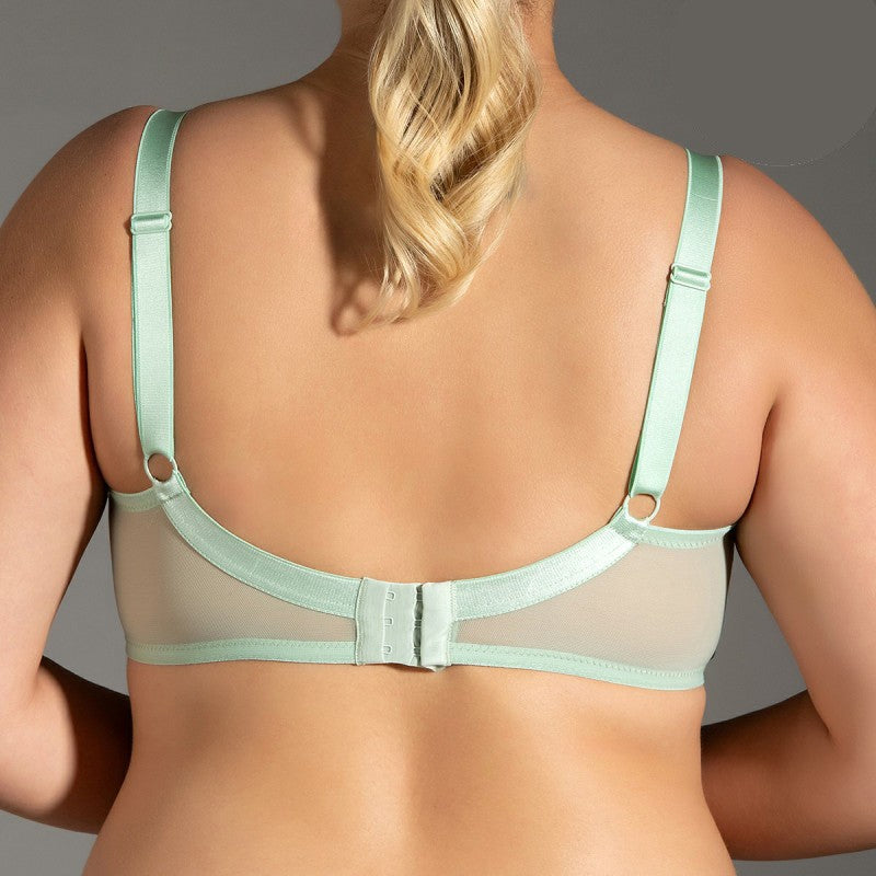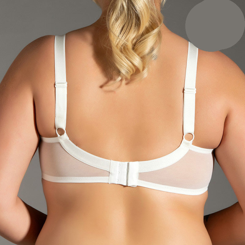 Сутиенът е с банели и широки презрамки, което осигурява не само отлична подкрепа, но и невероятно удобство при носене. Твърдите чашки без подплънки оформят идеалната линия на бюста, докато функционалността на три степени на регулиране на закопчаването позволява индивидуално приспособяване.
