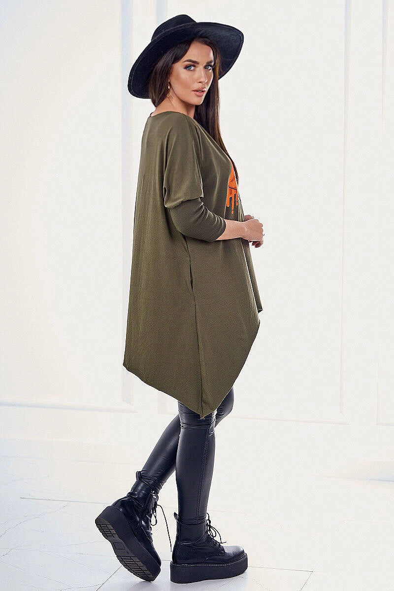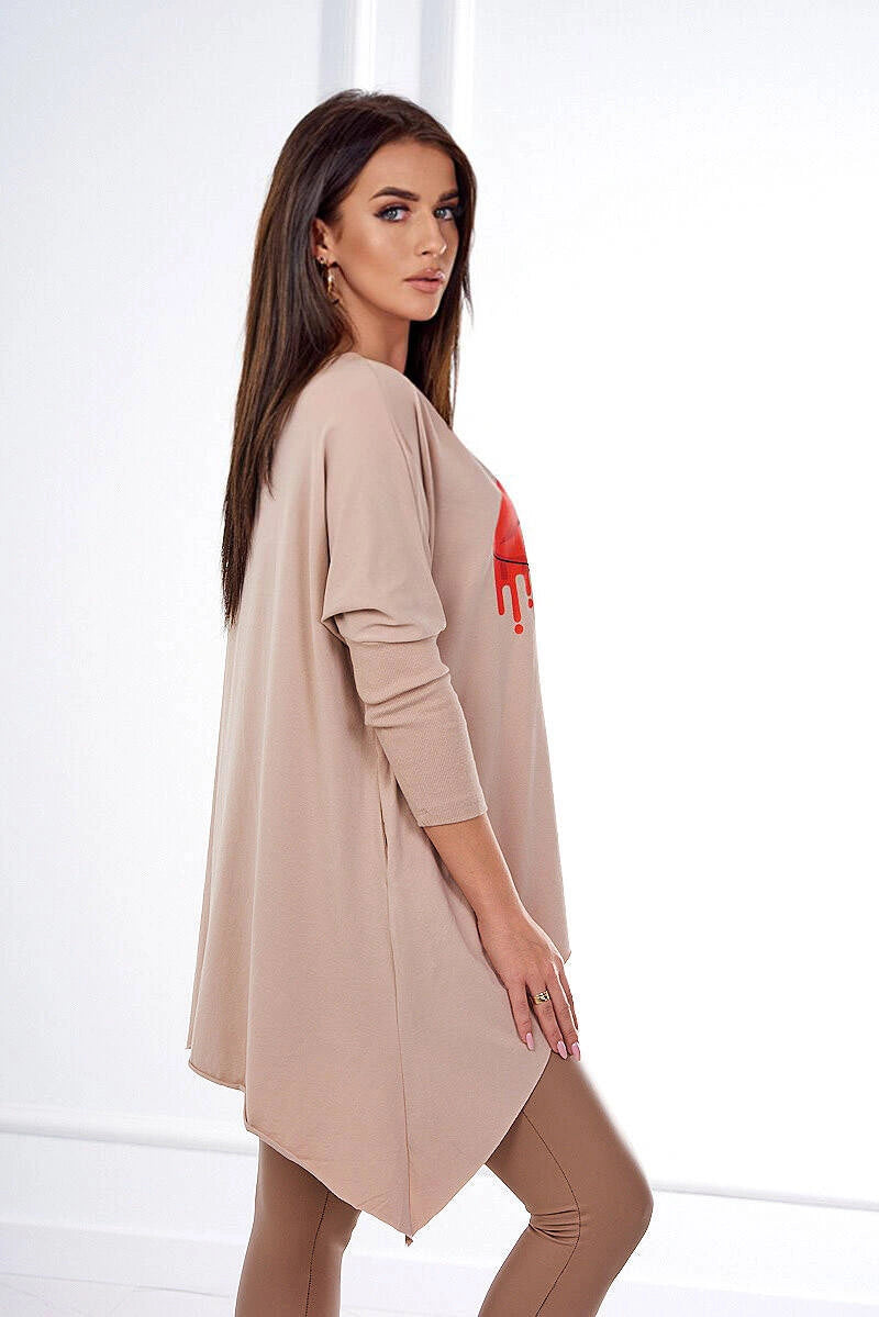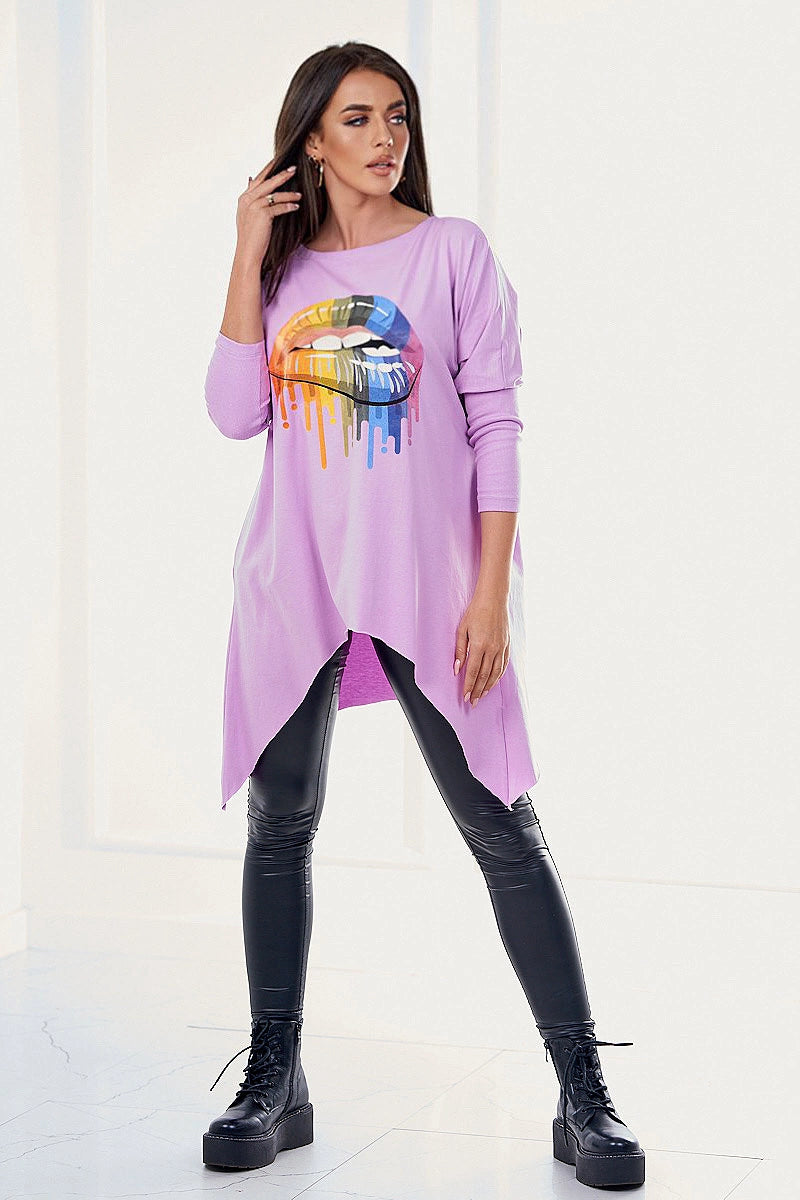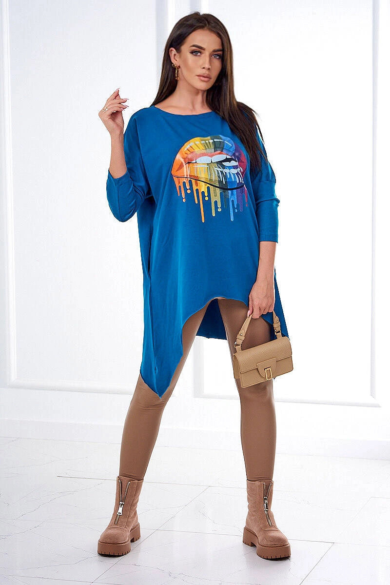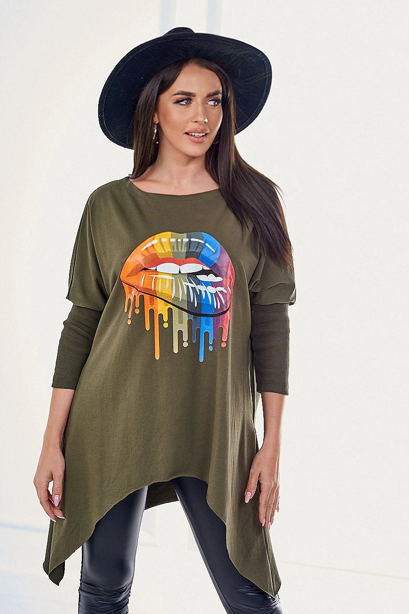 Представяме ви страхотна овърсайз блуза. Блузата има щампа с уста в цвят на дъгата отпред. Блуза с джобове. Тази блуза се характеризира с модерна визия и прецизност на изработка. Със сигурност не може да липсва в гардероба ви. Блузата е изработена от висококачествена материя. Универсалният размер ще бъде подходящ за жени, които носят размери M, L или XL ежедневно