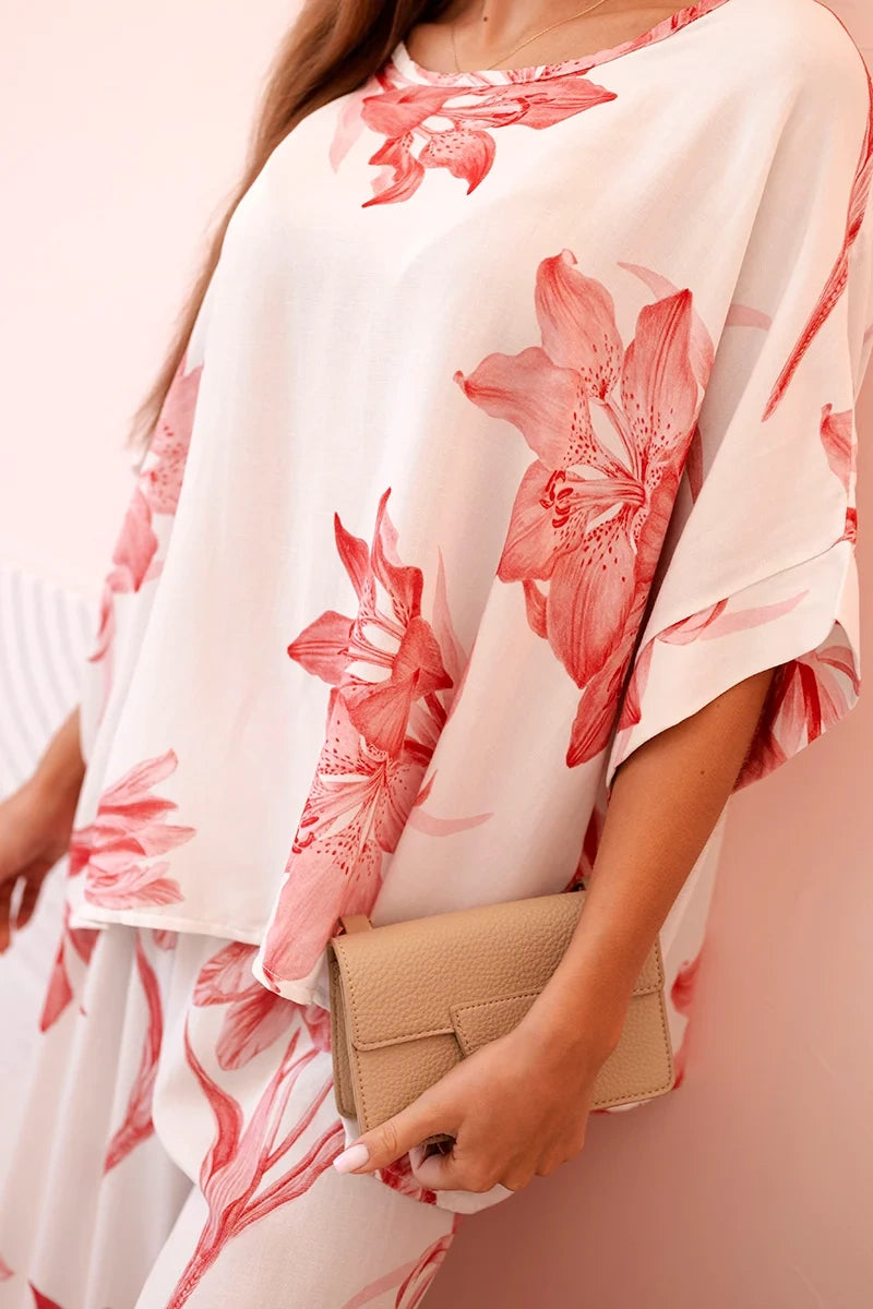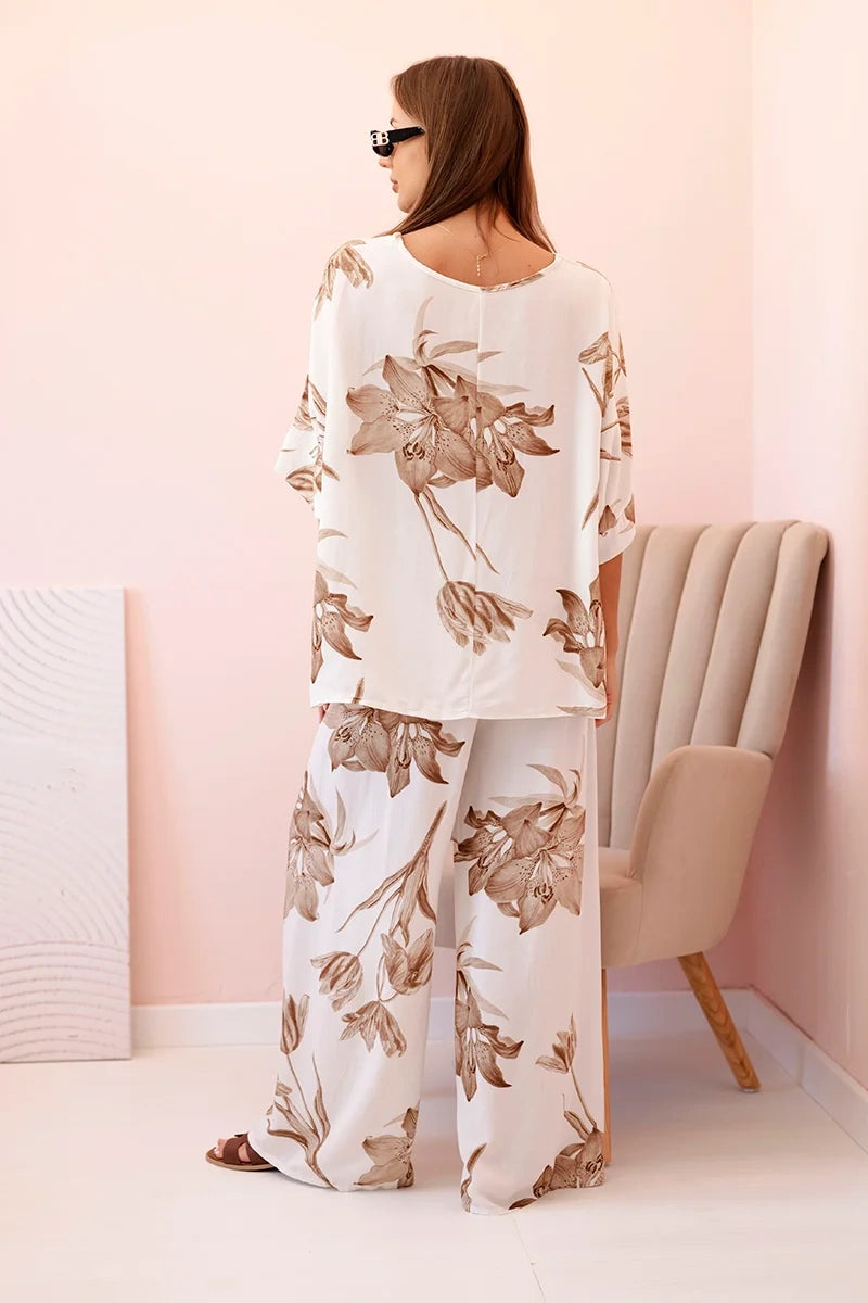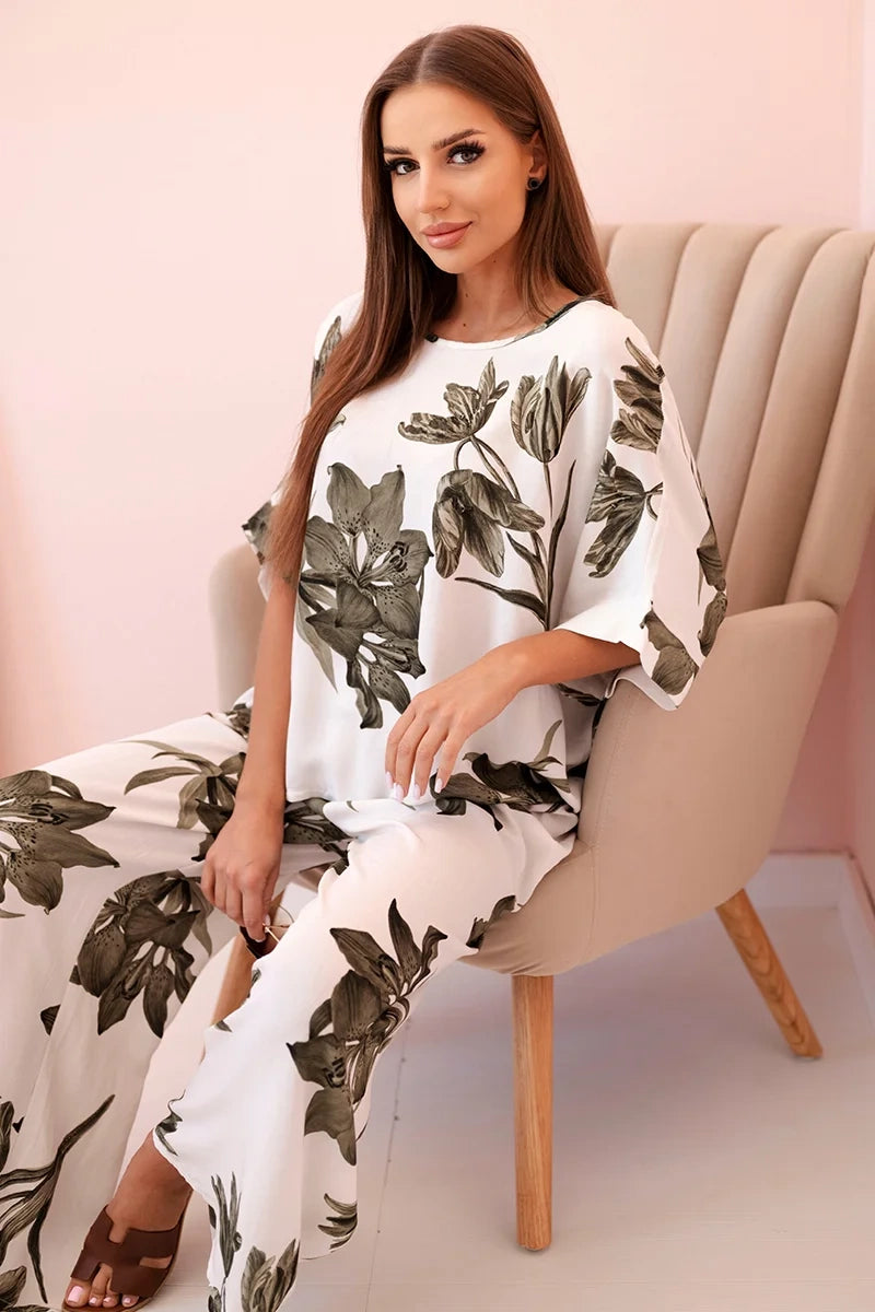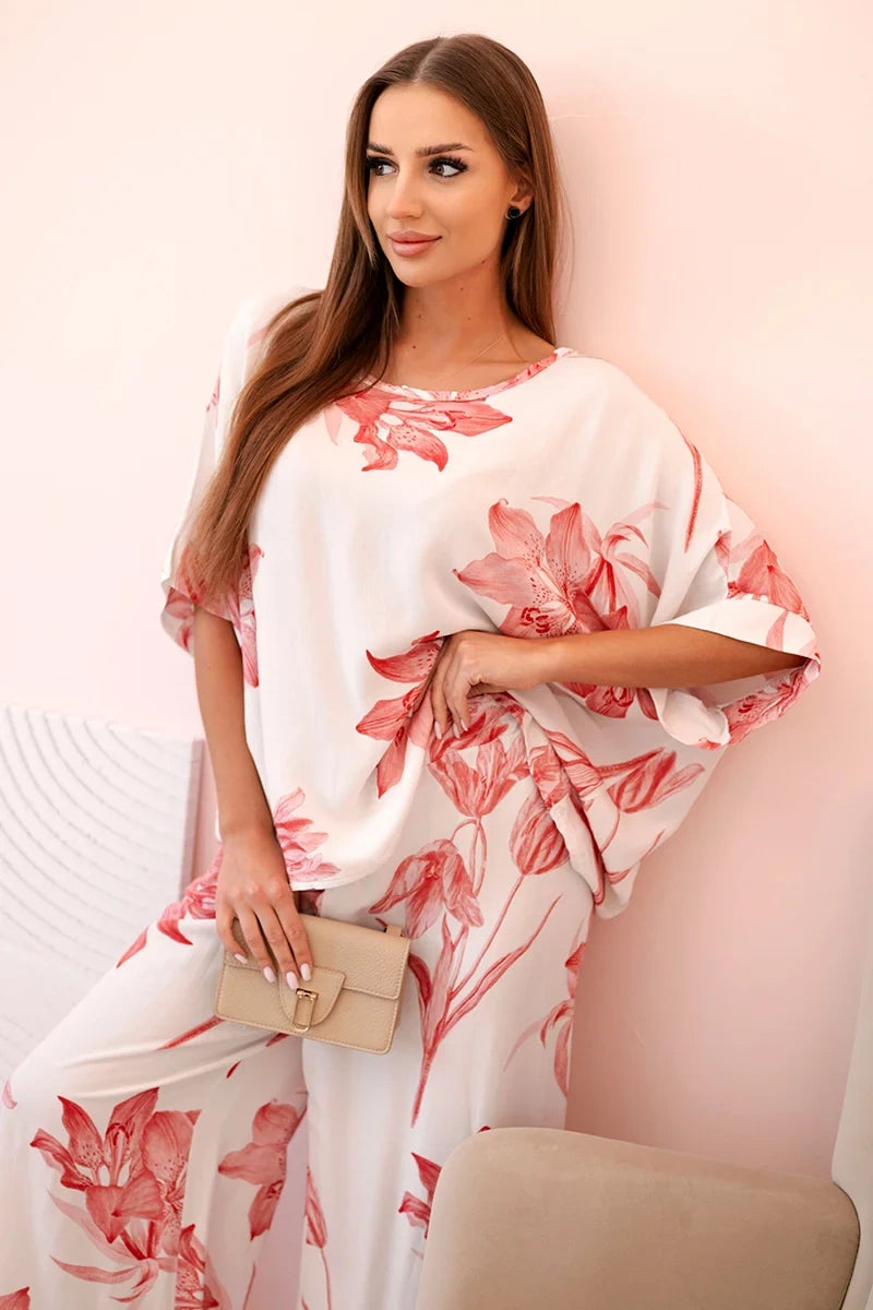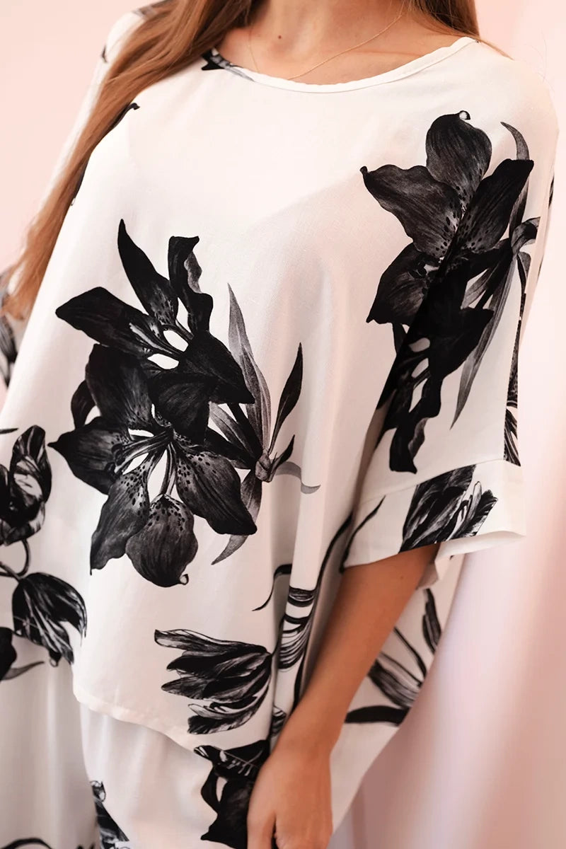Овърсайз дамски комплект от вискоза с флорален десен ART24107