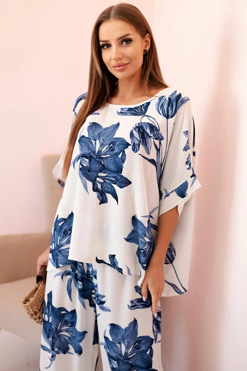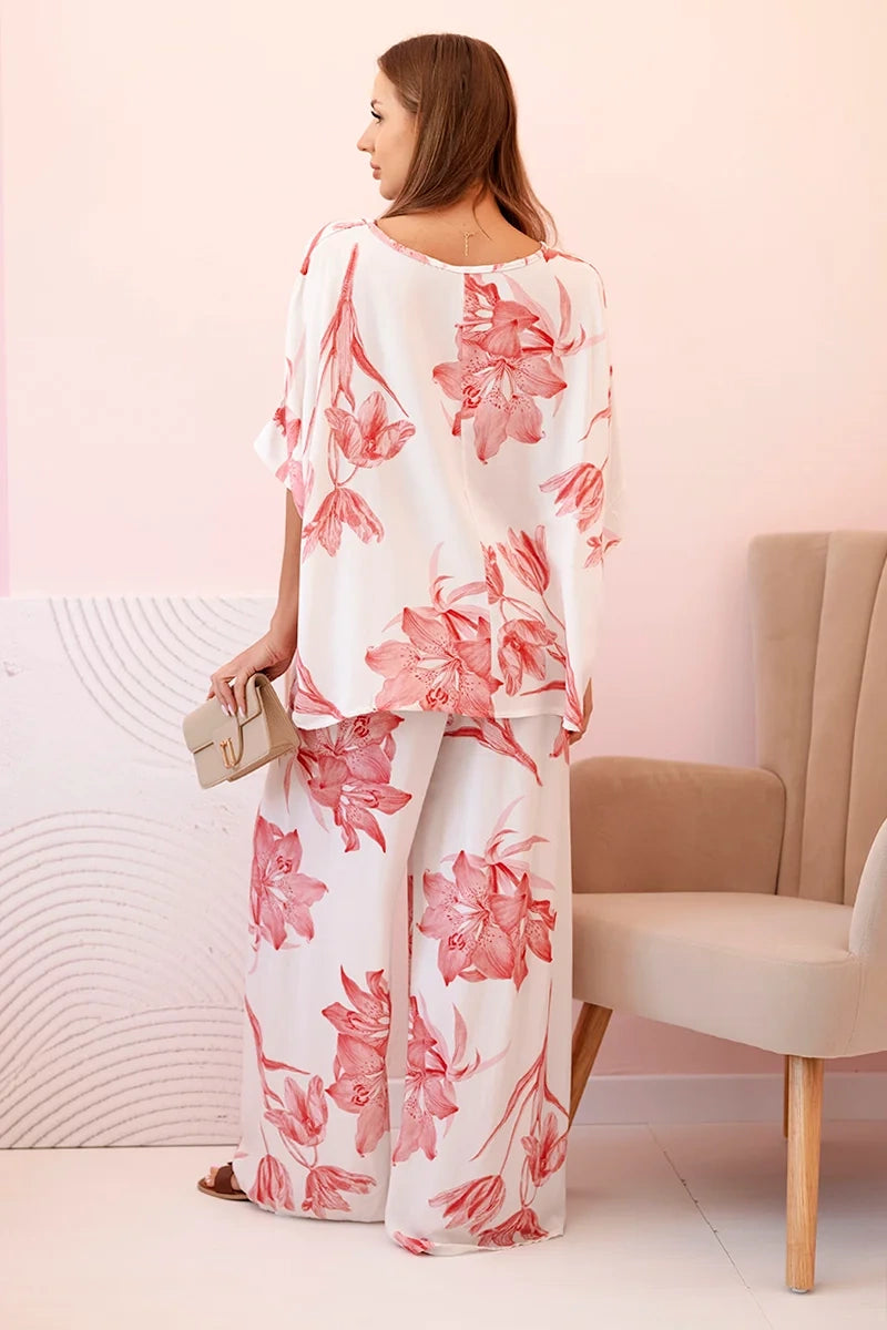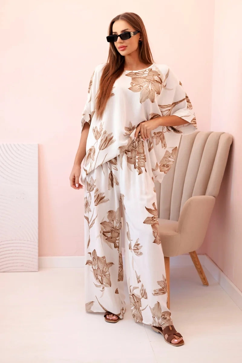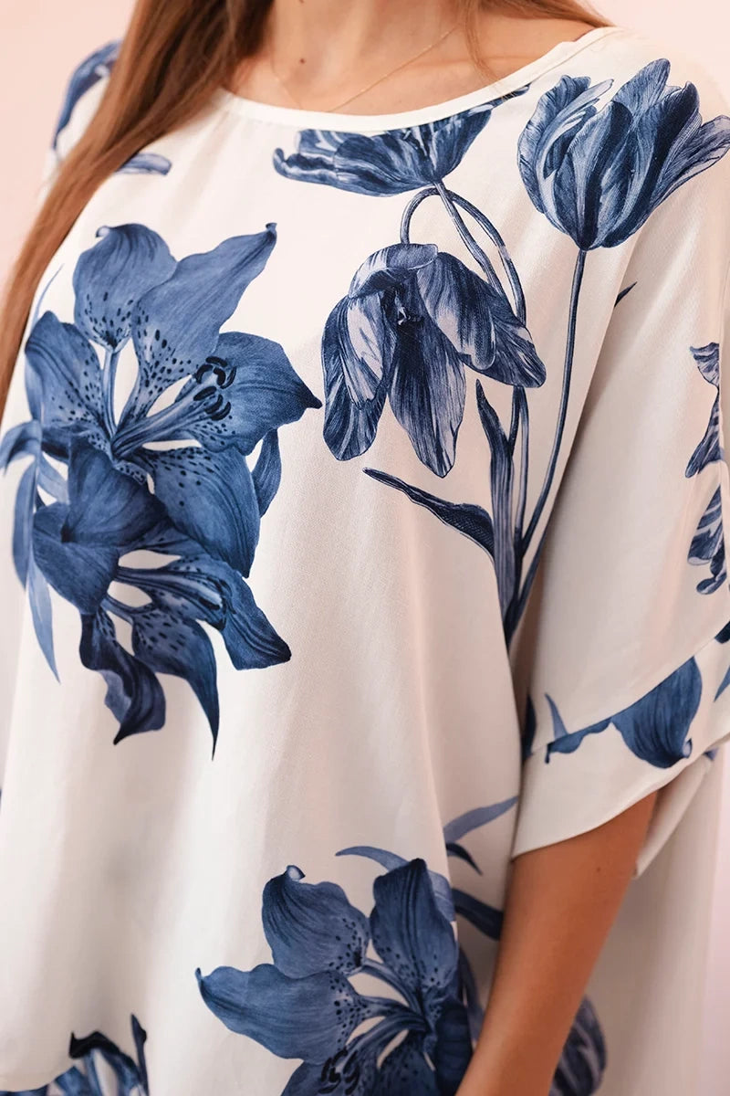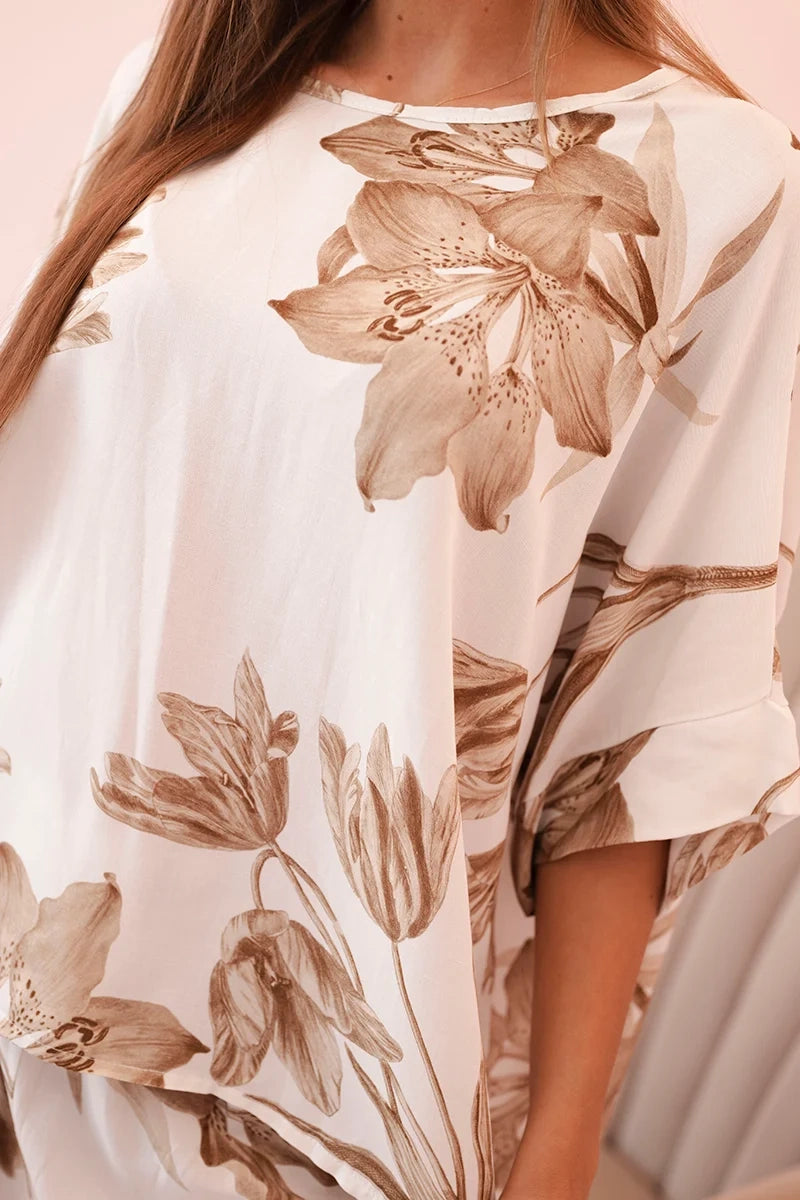 Овърсайз дамски комплект от вискоза с флорален десен ART24107