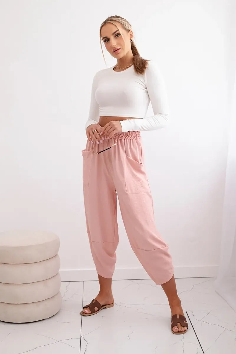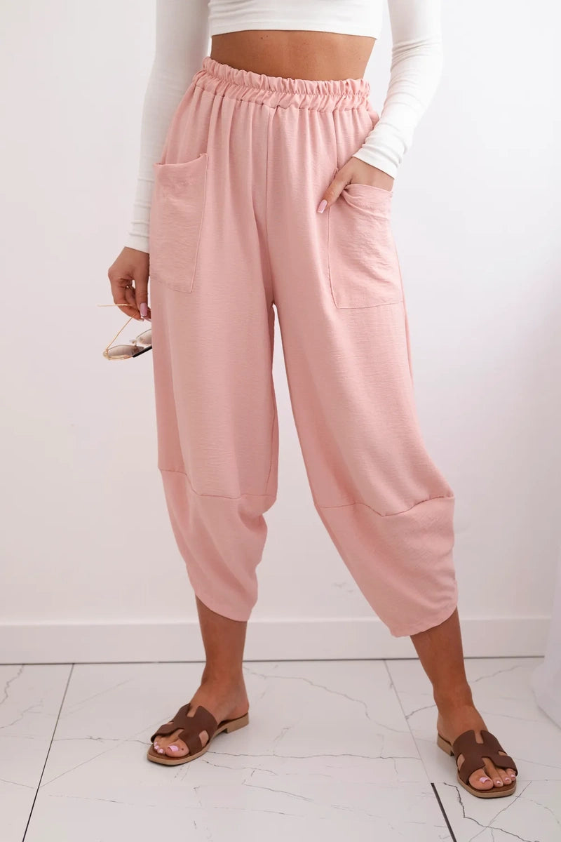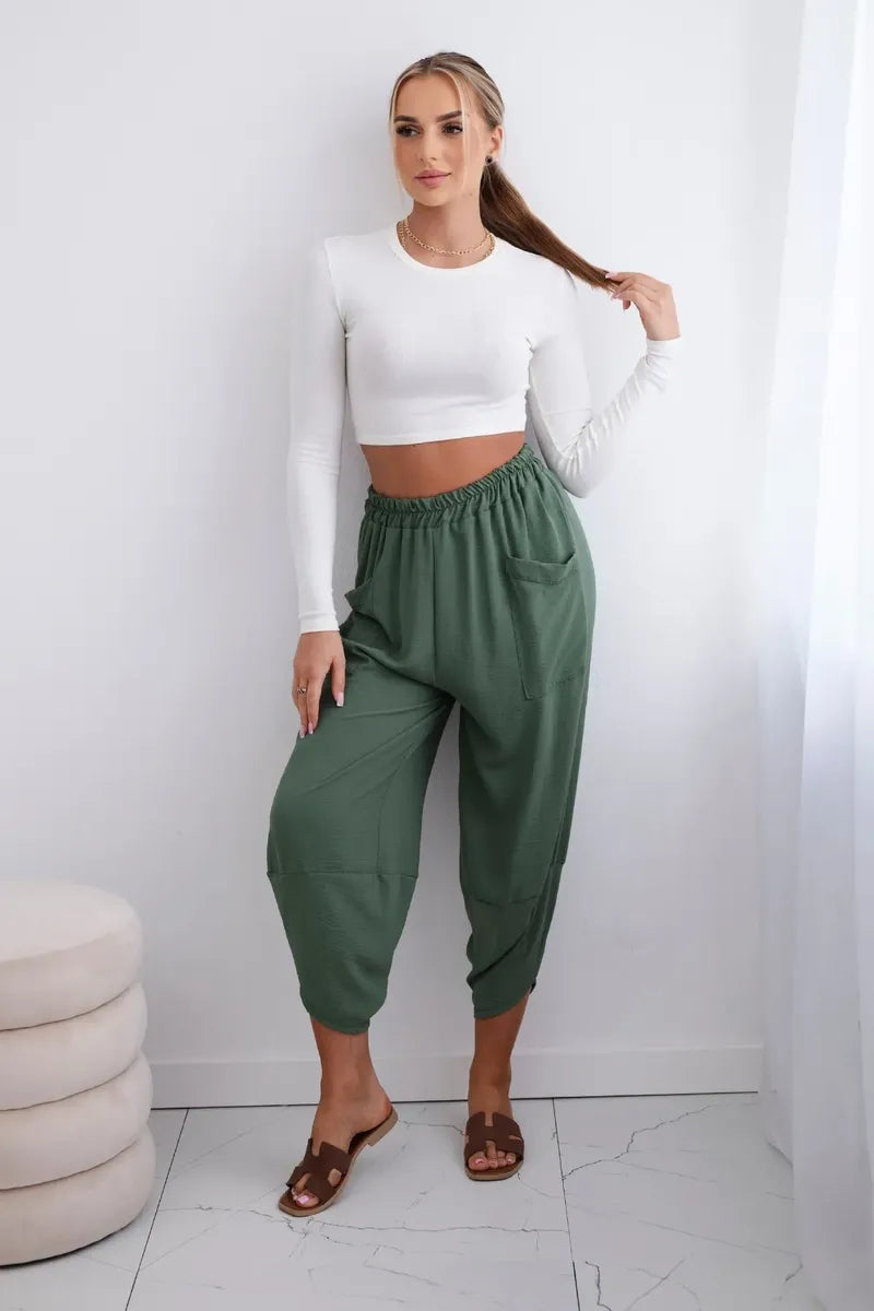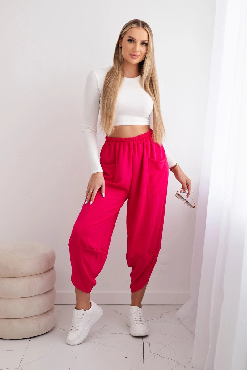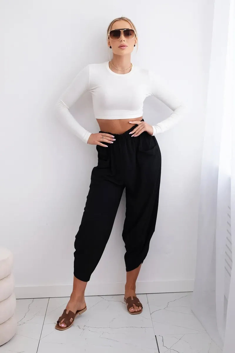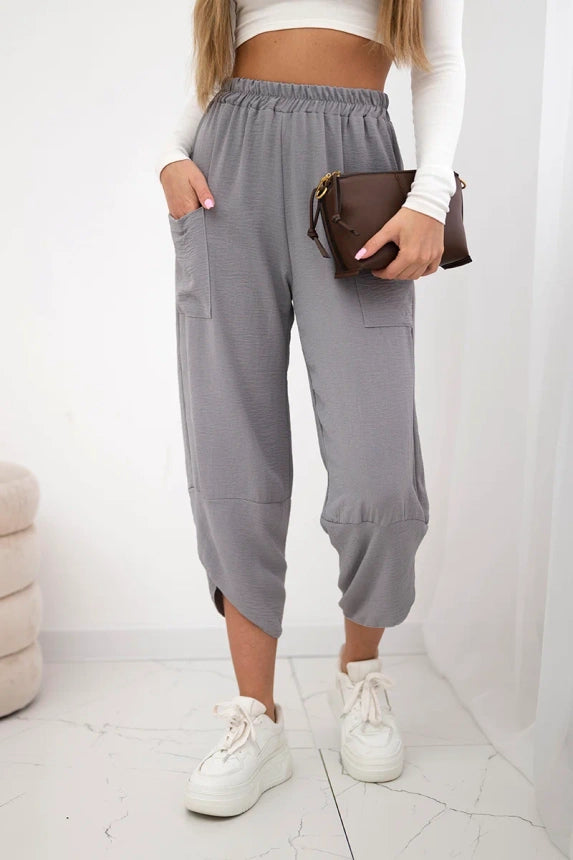Широките панталони с джобове са практичен и стилен избор, съчетаващ комфорт и модерен дизайн. Изработени от висококачествени материали, тези панталони са удобни за носене през целия ден. Характерно за тях са широките крачоли, които придават свобода и лекота на целия стайлинг. Освен това джобовете, разположени в предната част на панталона, придават практичност и функционалност. Перфектни за различни поводи, от ежедневни излизания до по-официални срещи, тези панталони ще ви накарат да се чувствате комфортно и стилни в същото време. Размерът е универсален и ще бъде подходящ за жени, носещи размер S, M или L.