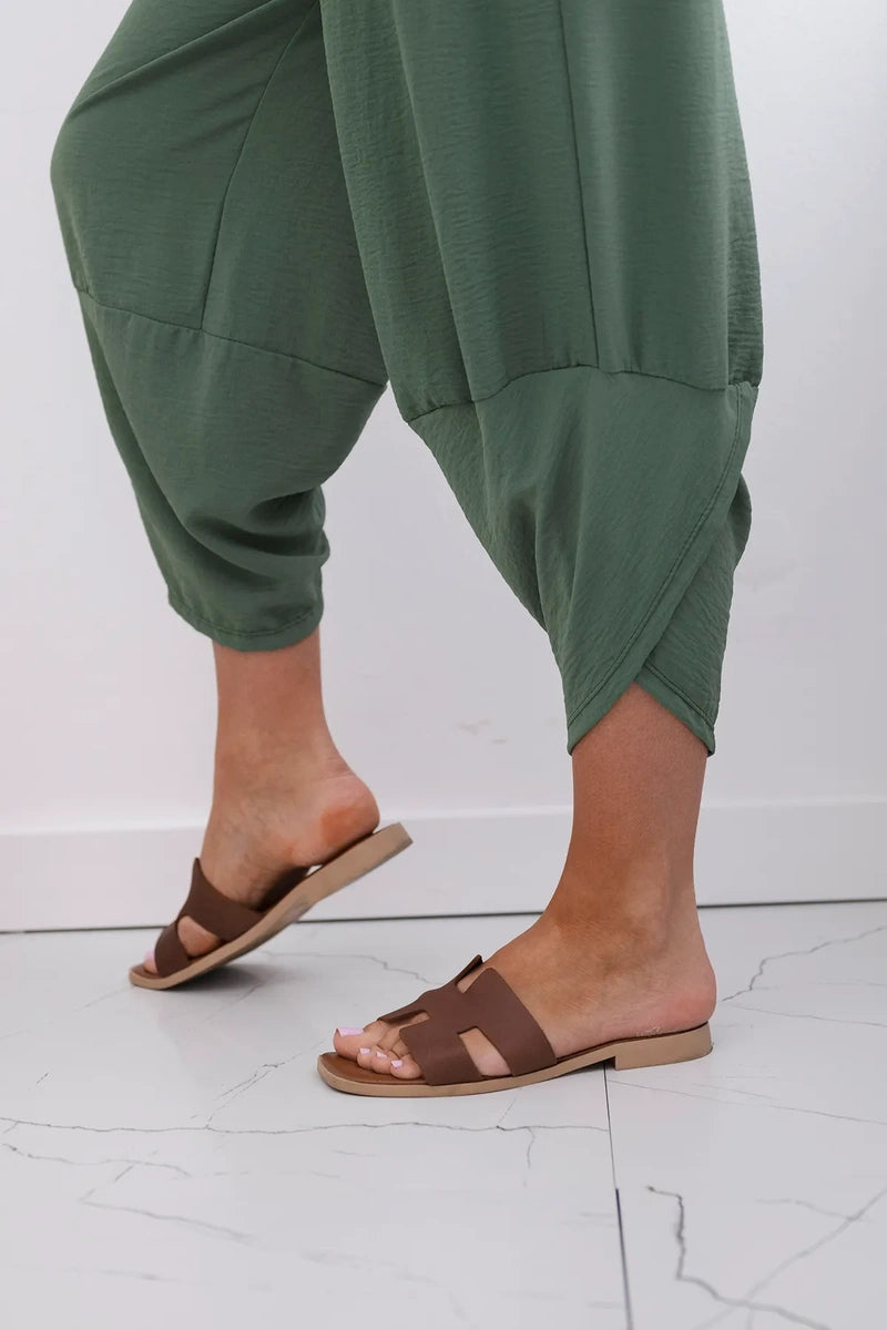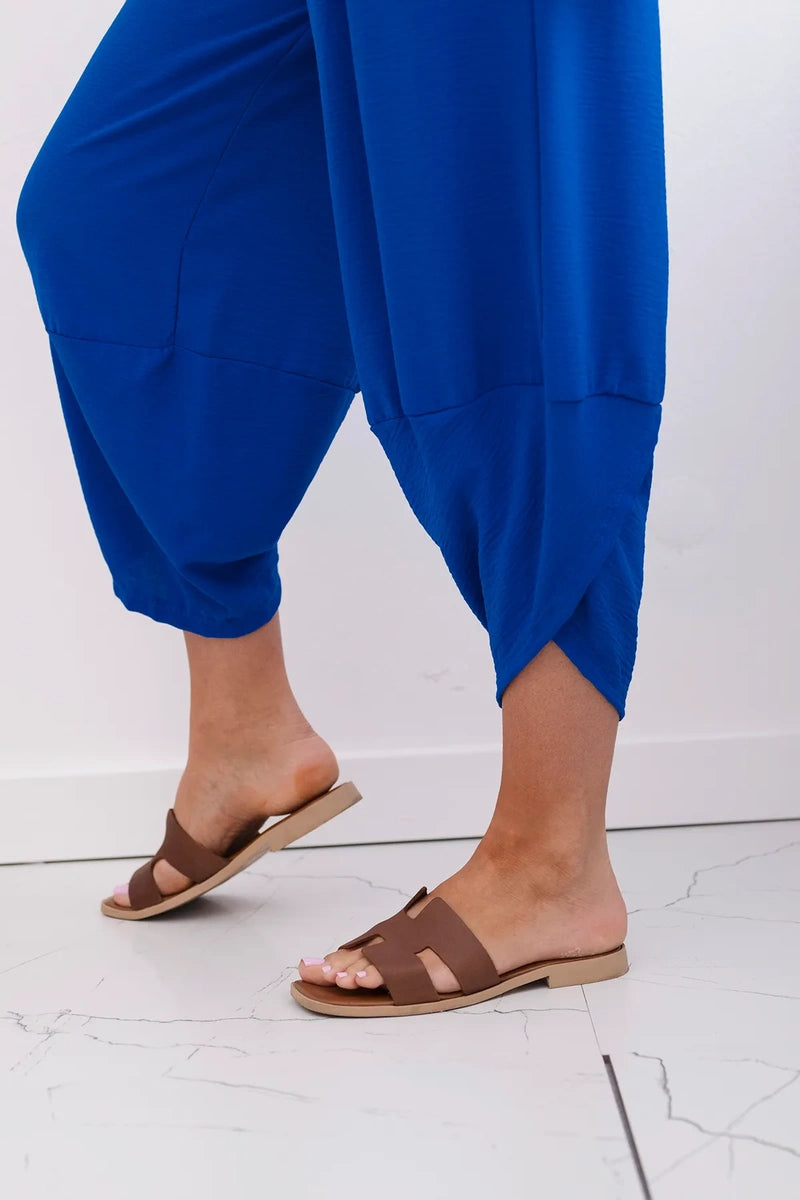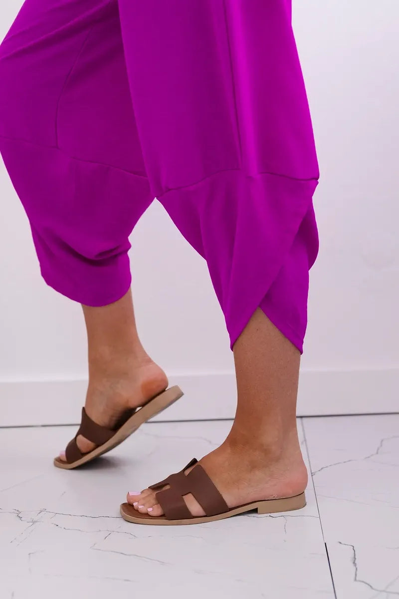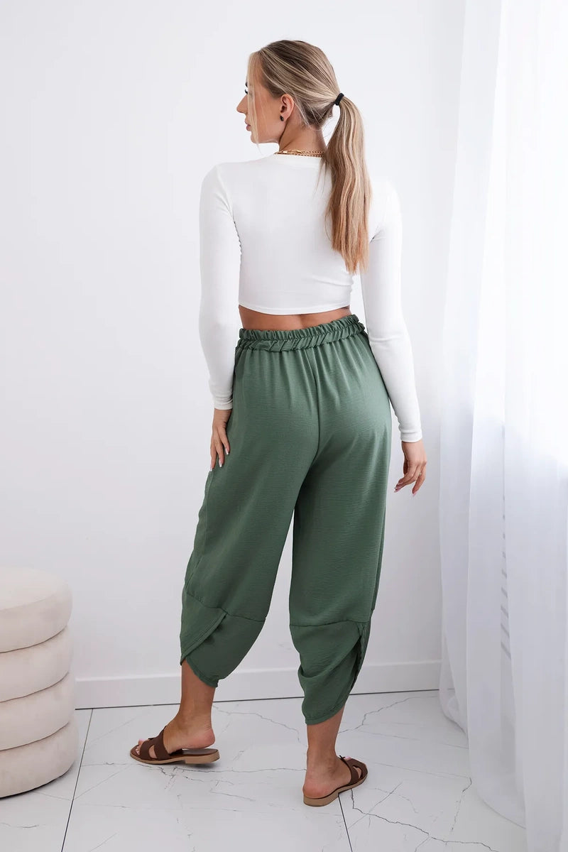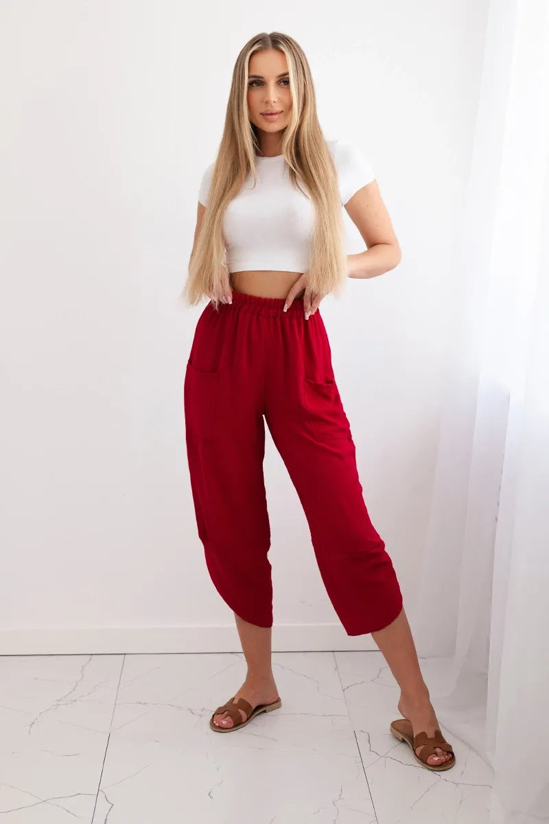 Широките панталони с джобове са практичен и стилен избор, съчетаващ комфорт и модерен дизайн. Изработени от висококачествени материали, тези панталони са удобни за носене през целия ден. Характерно за тях са широките крачоли, които придават свобода и лекота на целия стайлинг. Освен това джобовете, разположени в предната част на панталона, придават практичност и функционалност. Перфектни за различни поводи, от ежедневни излизания до по-официални срещи, тези панталони ще ви накарат да се чувствате комфортно и стилни в същото време. Размерът е универсален и ще бъде подходящ за жени, носещи размер S, M или L.