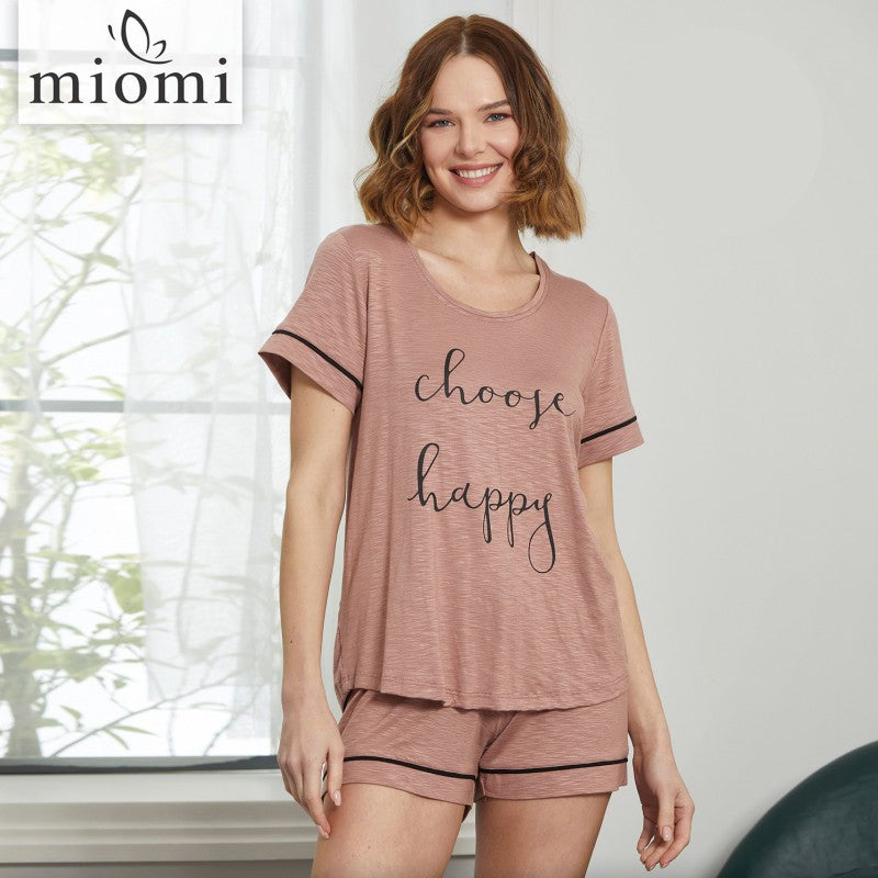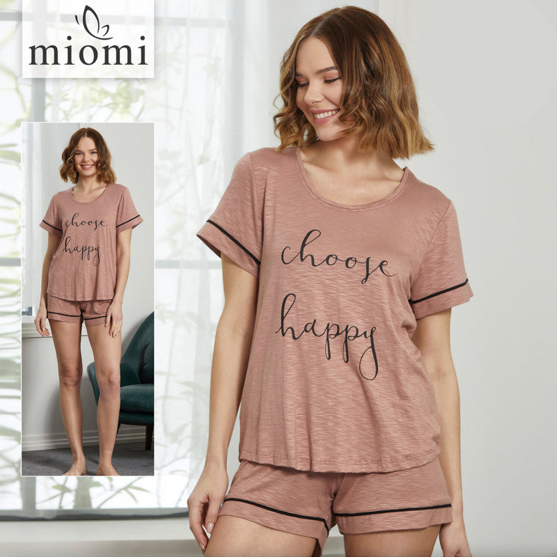Пижама с къси ръкави и шорти 94710. Мека, фина, приятна за тялото материя-вискоза. Комплект от къси панталонки с ластик и блуза с къс ръкав. Еластичен модел.