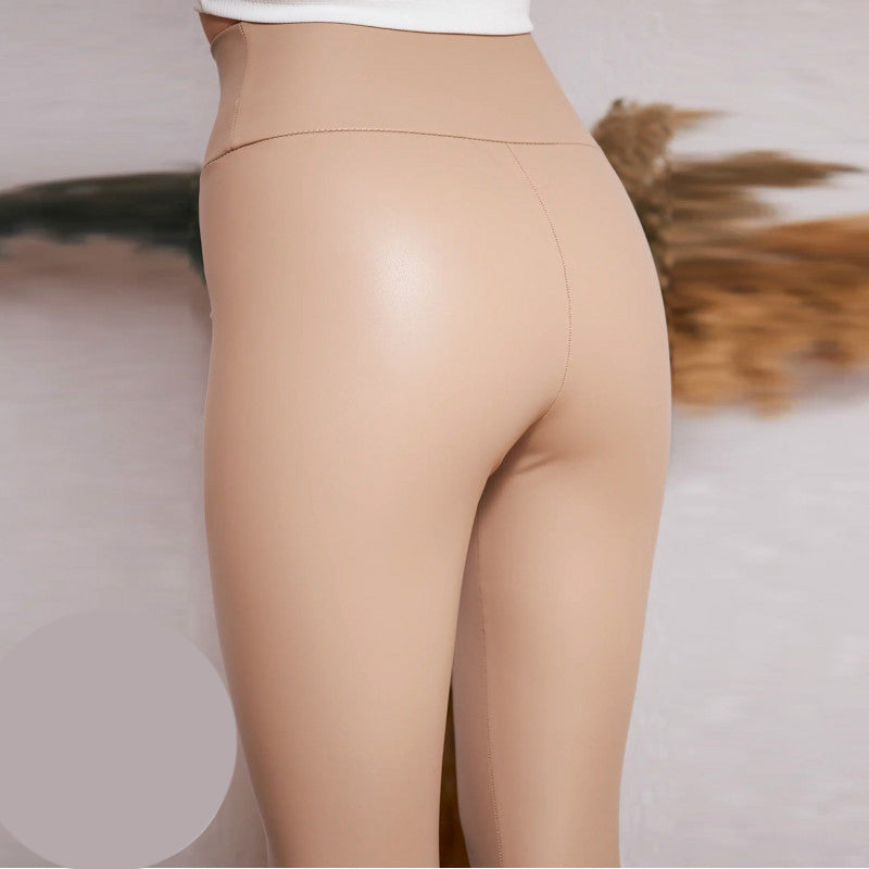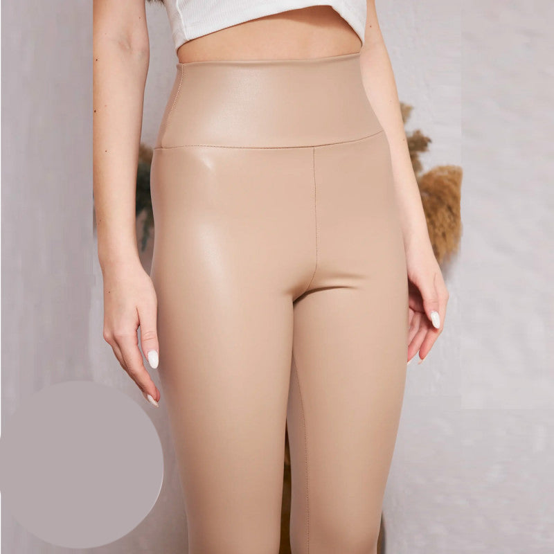 Плътен кожен клин с подплата OG-575. Кожен еластичен клин с подплата с мек плюш. Модел с висока талия, широк колан имитиращ кожа.
