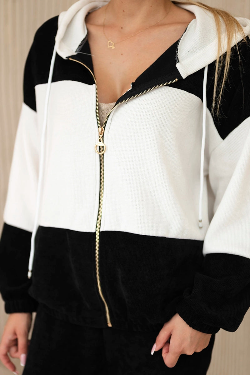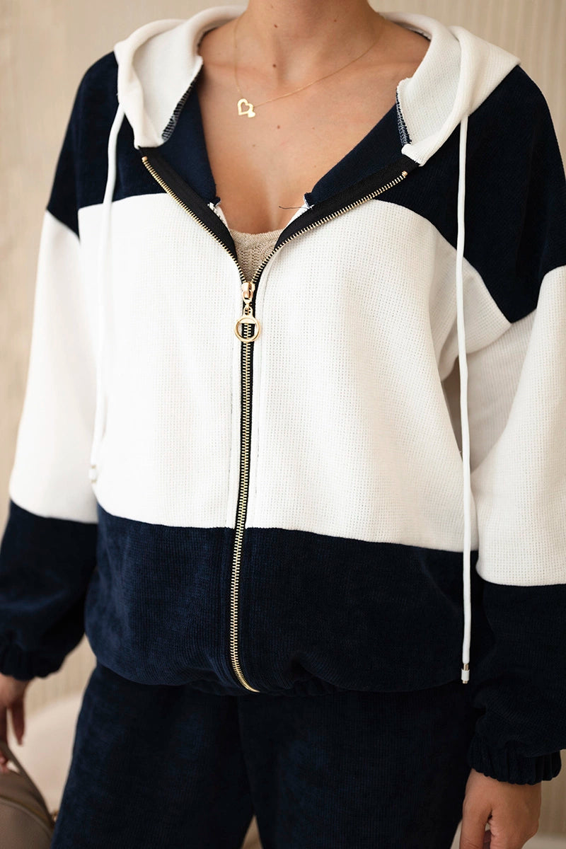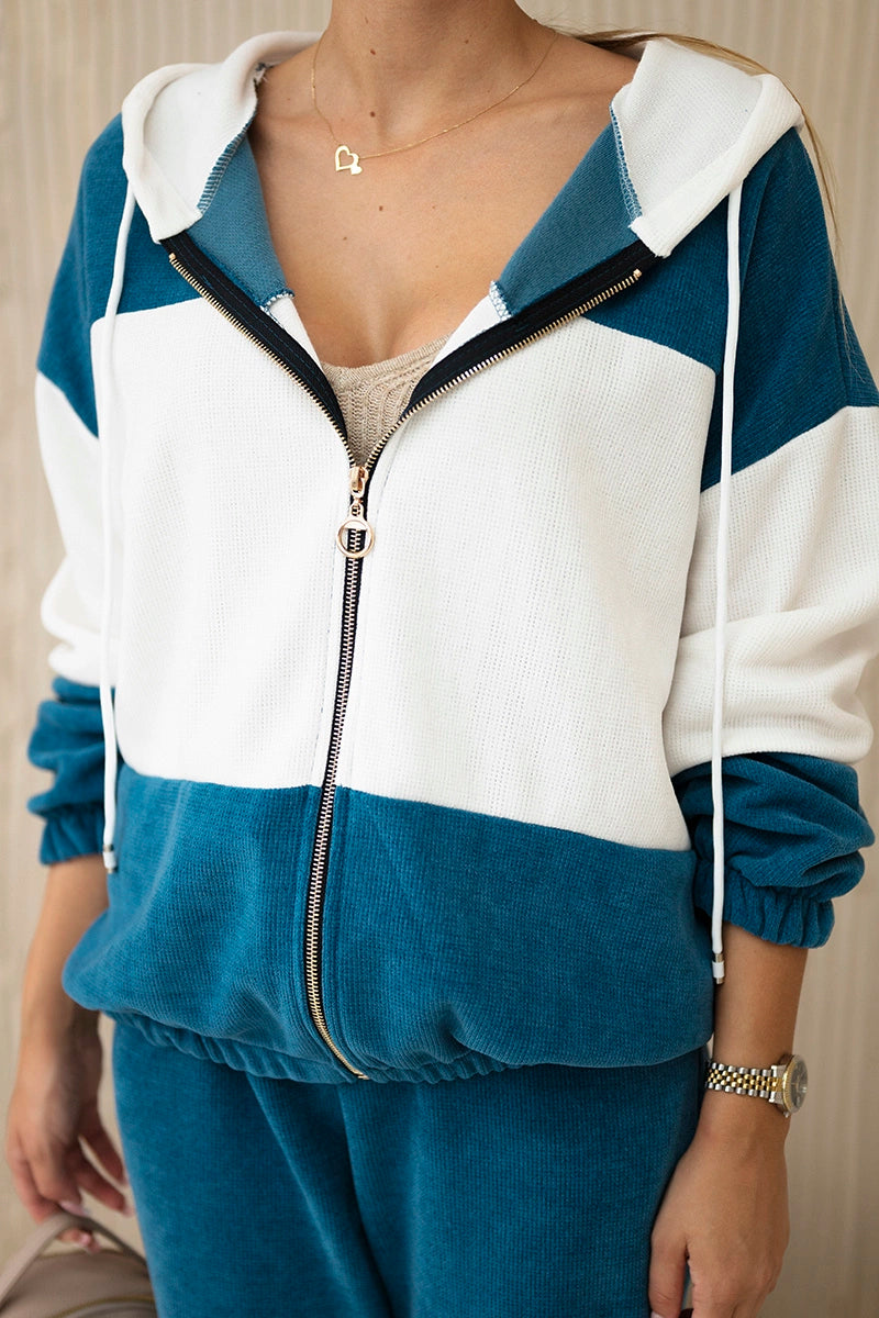 Рипсен велурен комплект от суитчер с панталони 6650