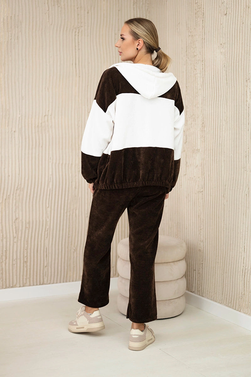Рипсен велурен комплект от суитчер с панталони 6650.