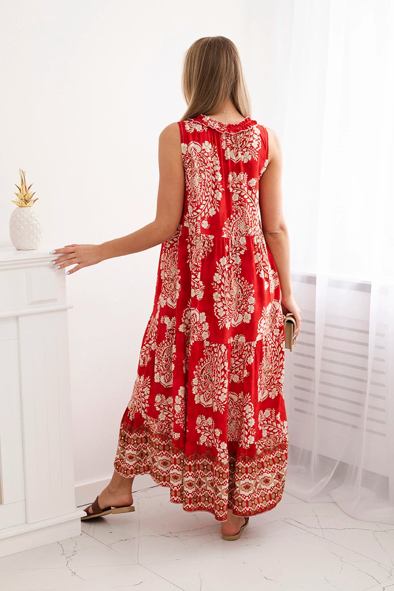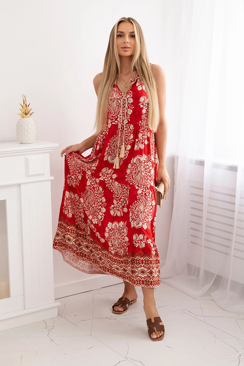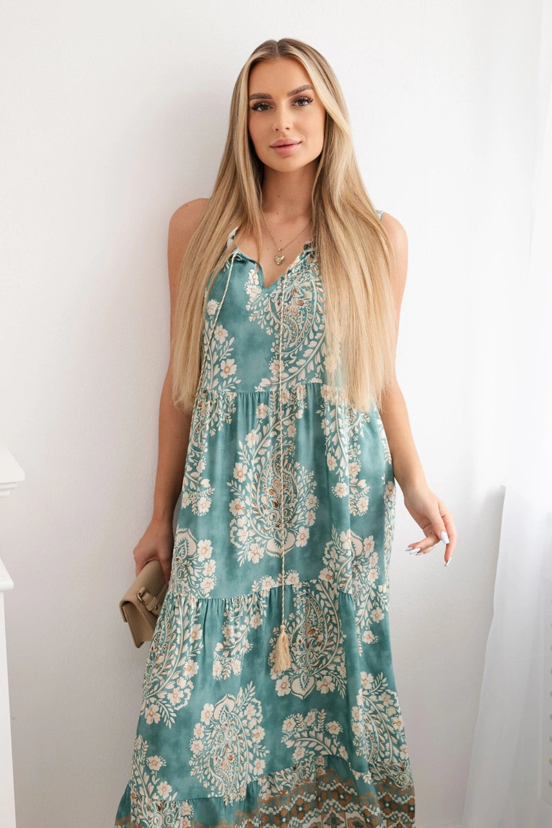 Рокля от вискоза с връзки на деколтето ART2702-1.