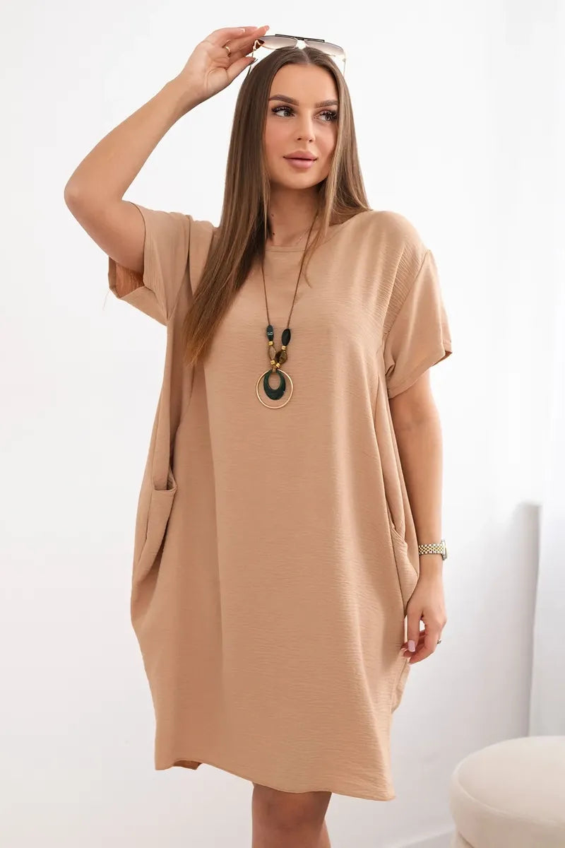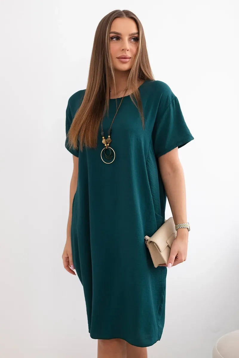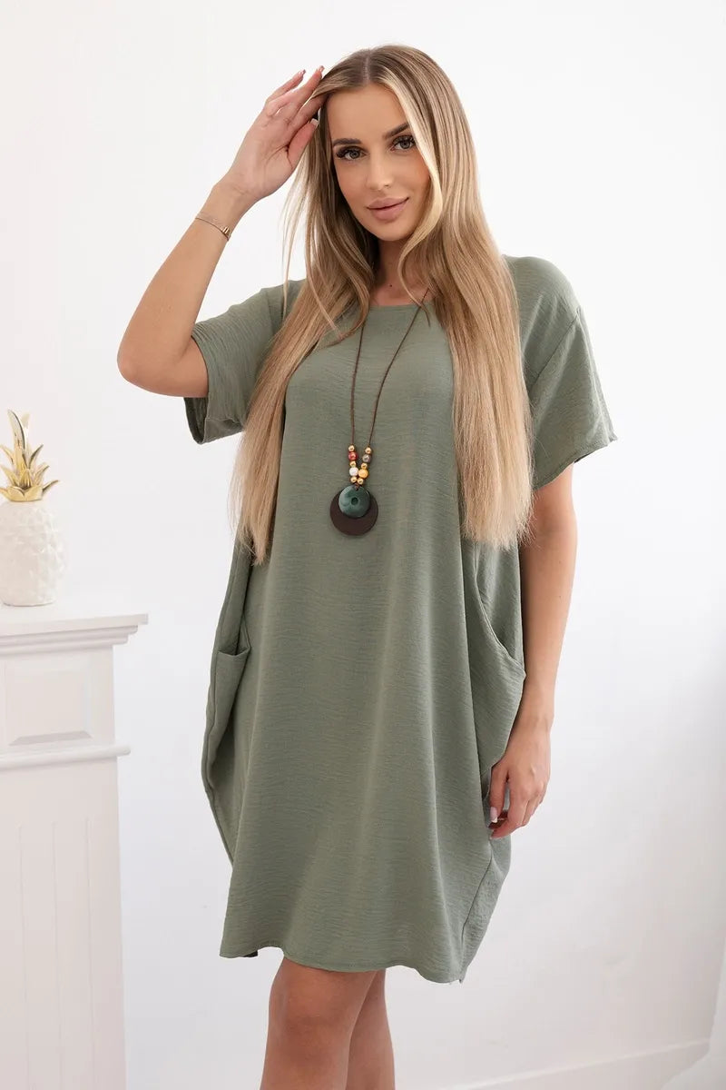Рокля с джобове и висулка е практичен и стилен избор за жени, които ценят удобството и елегантността. Изработена от лека и дишаща материя, тази рокля е удобна за носене през целия ден. Допълнително предимство са практичните джобове, които придават характер и функционалност. Допълнително роклята е декорирана с нежна висулка, която й придава фин чар и изразителност. Идеална за вечерни излизания, срещи с приятели или ежедневно носене, тази рокля ще ви накара да се чувствате комфортно и стилно във всяка ситуация. Размерът е универсален и ще бъде подходящ за жени, носещи размер S, M или L.