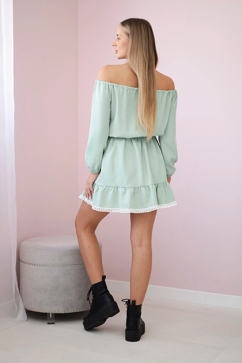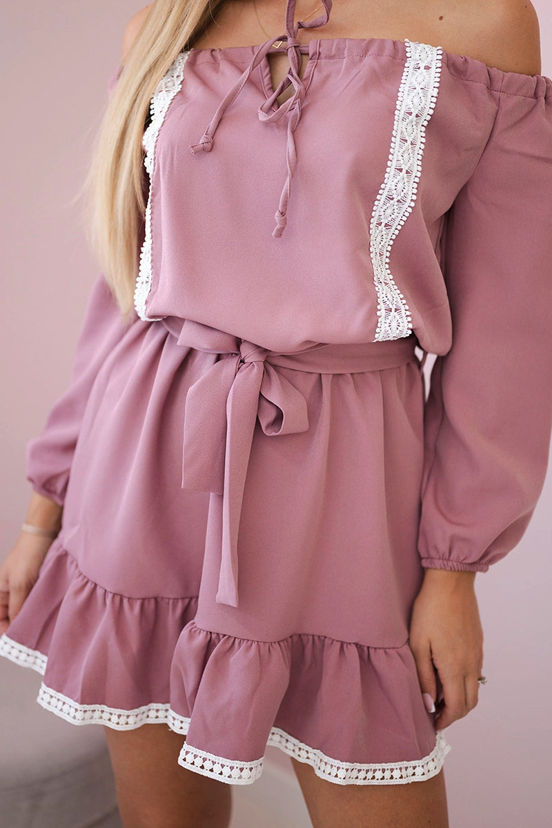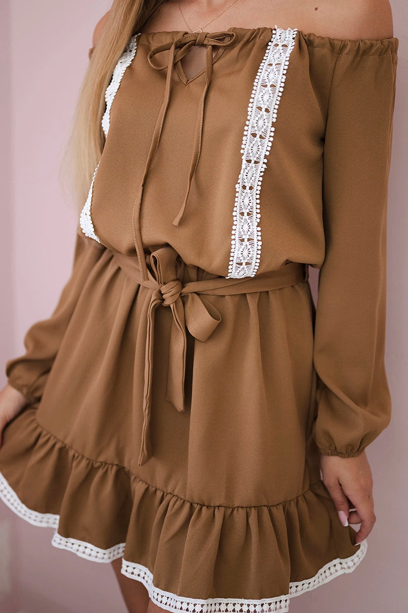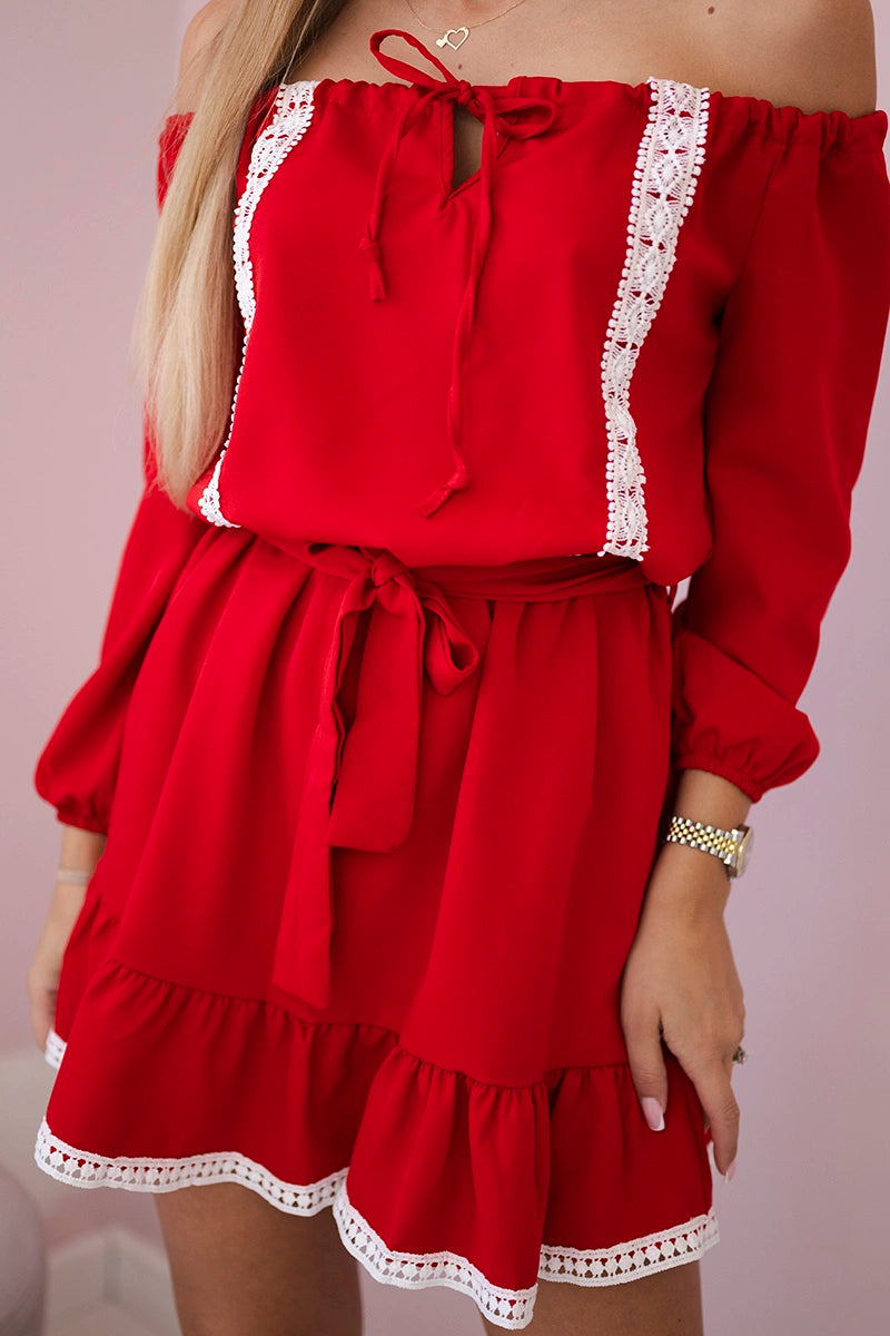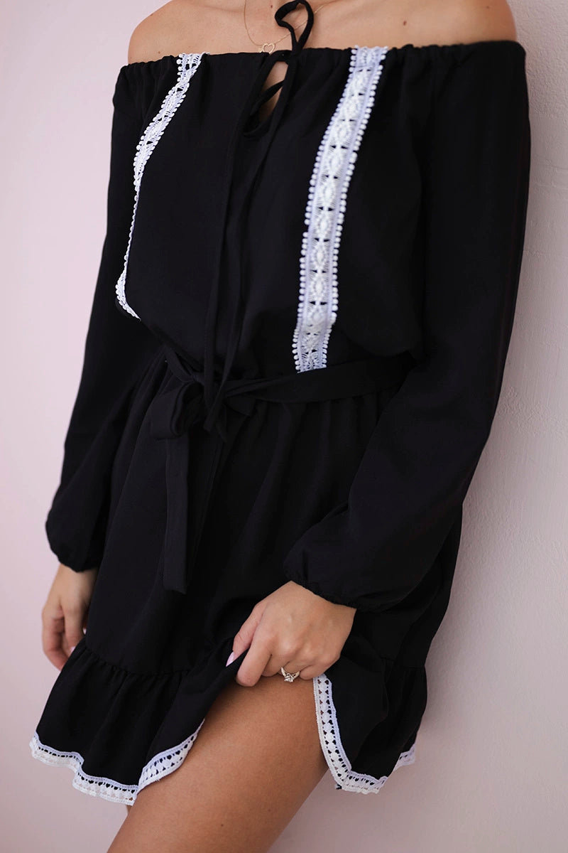 Представяме ви удобна рокля. Рокля с връзване на талията. Испанска рокля с дантелена панделка. Много модерна кройка. Роклята е изработена от висококачествен материал.