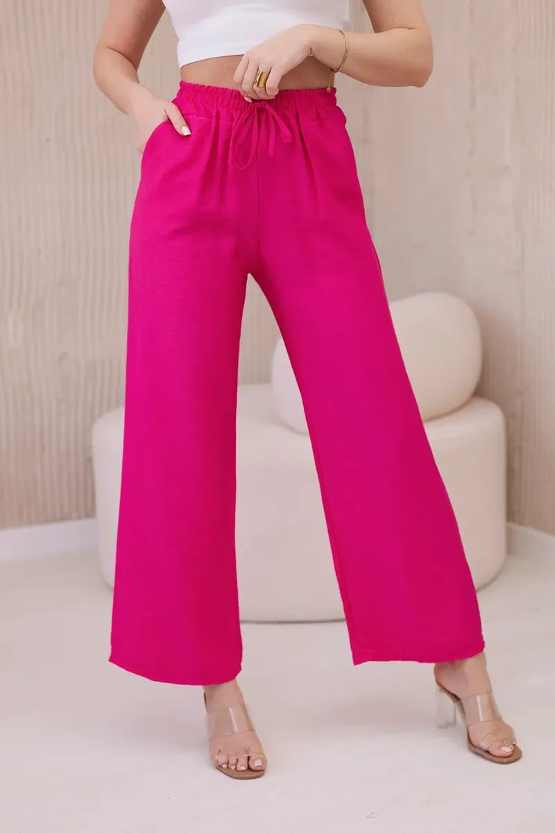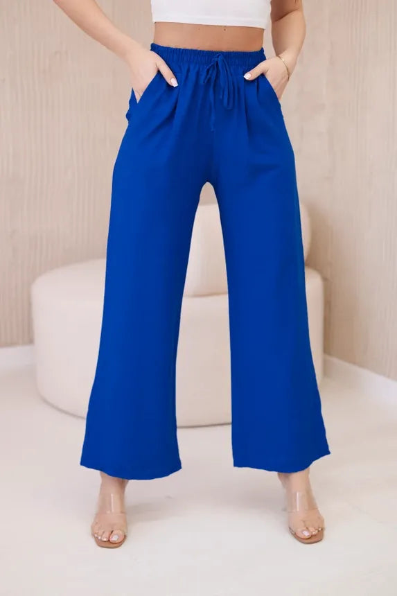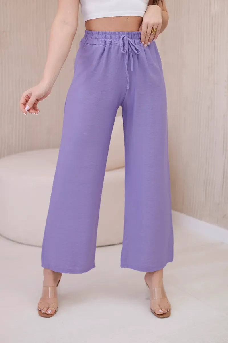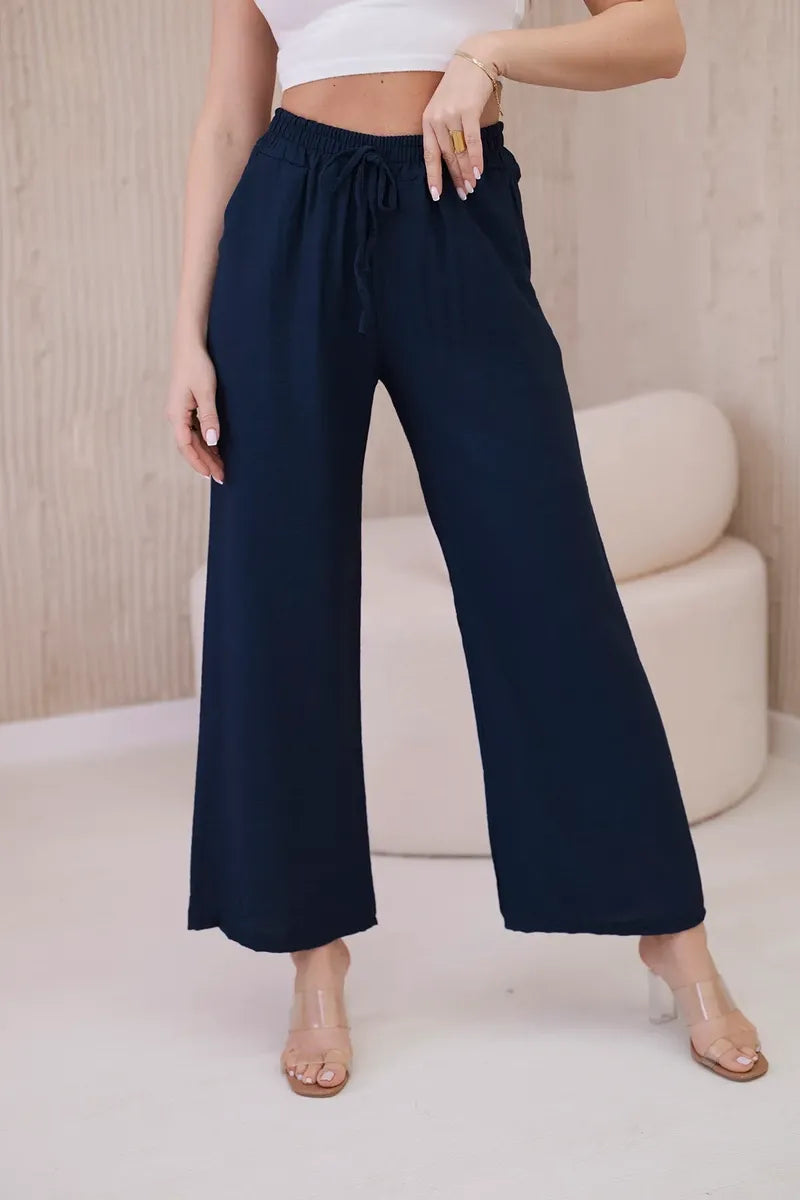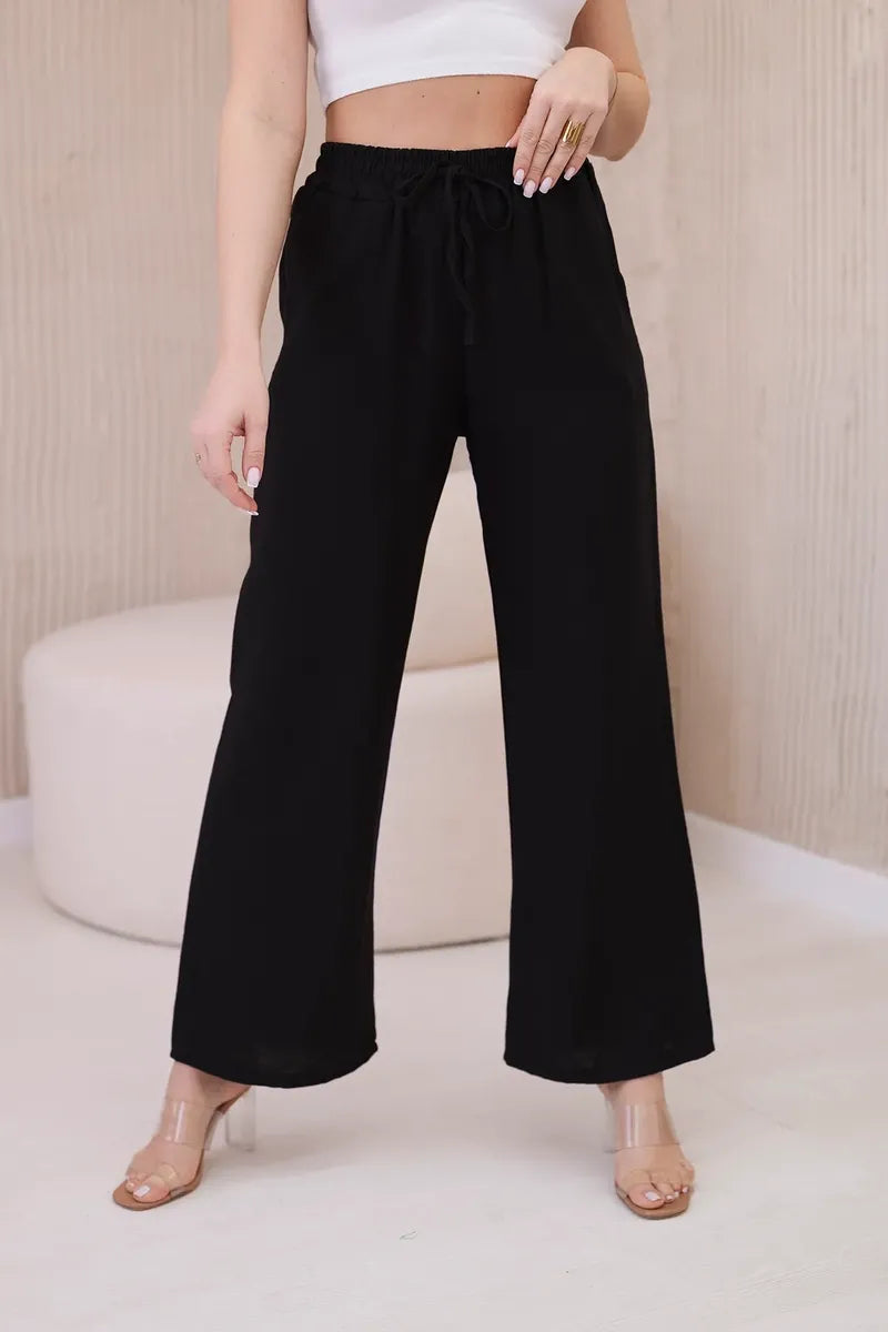 Панталонът от вискоза с широки крачоли е уникална дреха, съчетаваща удобство и елегантност. Изработени от лека и ефирна вискозна материя, тези панталони не само гарантират свобода на движение, но и ви карат да се чувствате леки и свежи през целия ден. Широкият крачол придава на панталона характерна, свободна кройка, която е едновременно модерна и удобна. Този елемент прави панталона изключително стилен и впечатляващ, като придава оригиналност на всеки стайлинг. Универсалният дизайн на широките панталони ги прави идеални за различни поводи и стилове. Можете да ги носите както с ежедневни, ежедневни тоалети, така и с по-елегантни комплекти за бизнес срещи или вечерни излизания. Панталоните от вискоза с широки крачоли са перфектният избор за жени, които ценят комфорта и стила. Благодарение на универсалния си дизайн и висококачествена изработка, тези панталони са незаменим елемент от гардероба, който идеално ще допълни всяка колекция дрехи. Размерът е универсален и ще бъде подходящ за жени, носещи размер S, M или L.