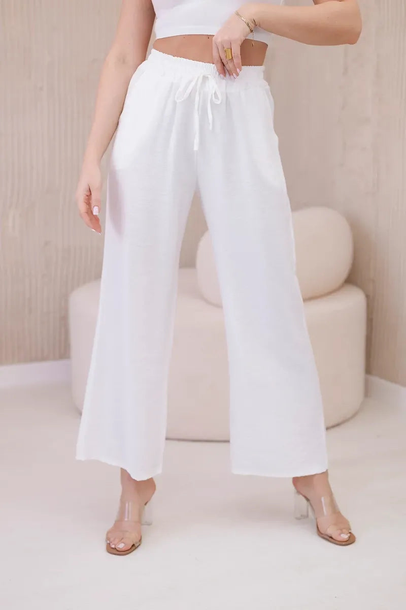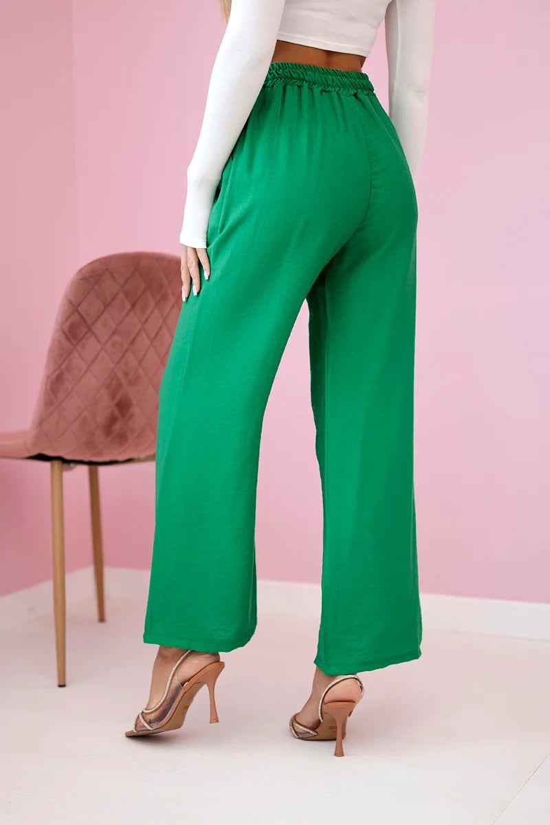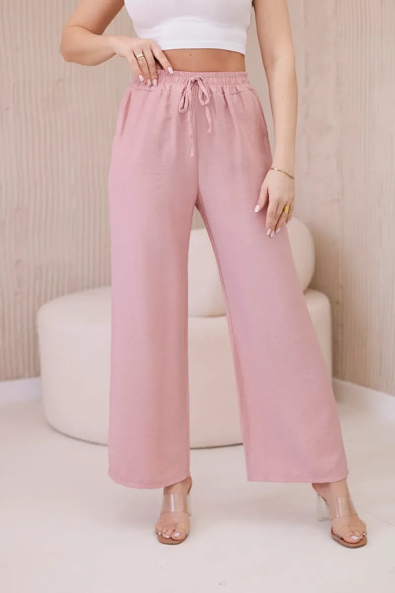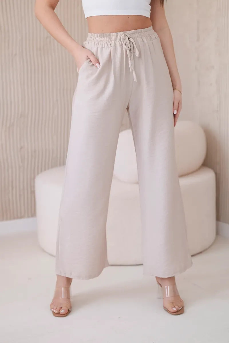 Панталонът от вискоза с широки крачоли е уникална дреха, съчетаваща удобство и елегантност. Изработени от лека и ефирна вискозна материя, тези панталони не само гарантират свобода на движение, но и ви карат да се чувствате леки и свежи през целия ден. Широкият крачол придава на панталона характерна, свободна кройка, която е едновременно модерна и удобна. Този елемент прави панталона изключително стилен и впечатляващ, като придава оригиналност на всеки стайлинг. Универсалният дизайн на широките панталони ги прави идеални за различни поводи и стилове. Можете да ги носите както с ежедневни, ежедневни тоалети, така и с по-елегантни комплекти за бизнес срещи или вечерни излизания. Панталоните от вискоза с широки крачоли са перфектният избор за жени, които ценят комфорта и стила. Благодарение на универсалния си дизайн и висококачествена изработка, тези панталони са незаменим елемент от гардероба, който идеално ще допълни всяка колекция дрехи. Размерът е универсален и ще бъде подходящ за жени, носещи размер S, M или L.
