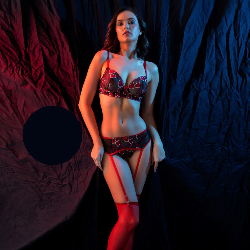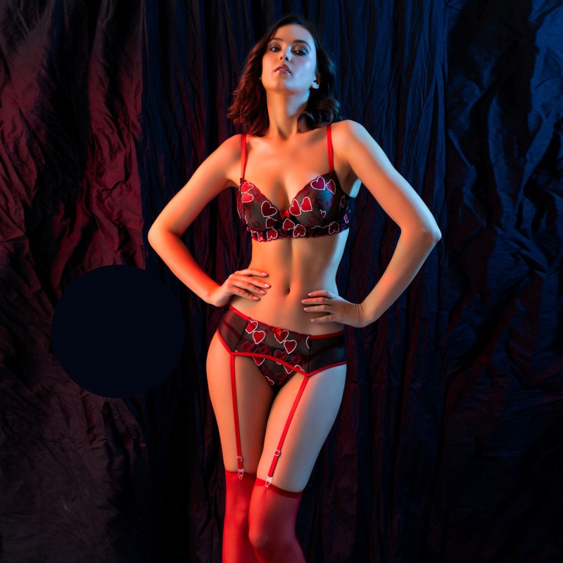 Секси дантелен комплект A-6412. Комплект от 4 части (сутиен + прашки + жартиери + чорапи).