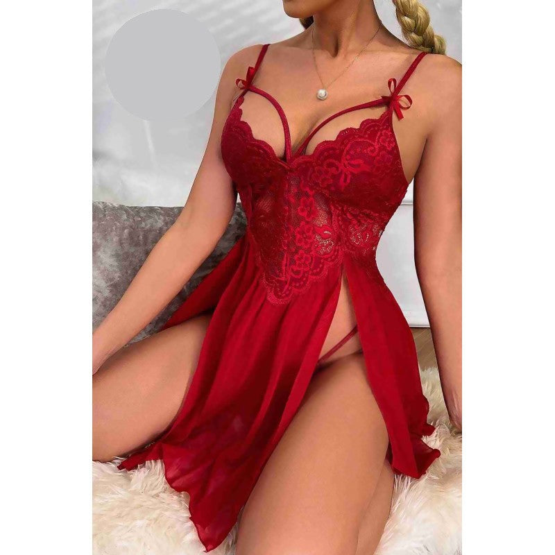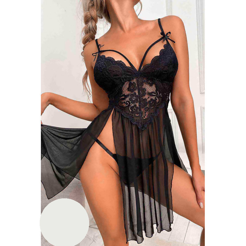 Секси дантелена нощница с тънки презрамки MS-2358. Бейбидол нощница MS-2358. Изработена от фин и мек тюл в комбинация с изискана дантела, тази нощница е перфектното допълнение към бельото на всяка жена. Комплект с фини тюлени прашки.
