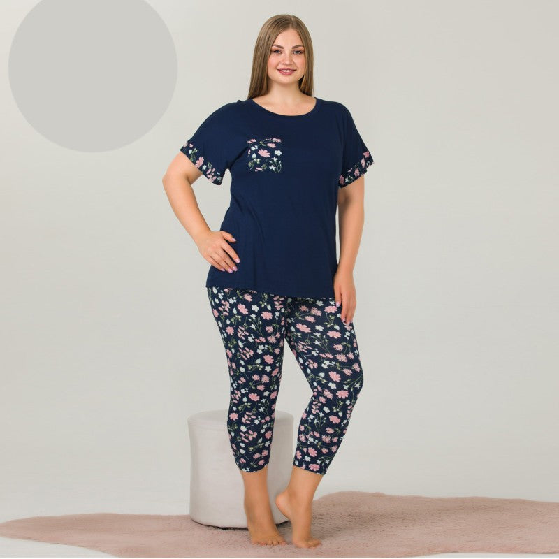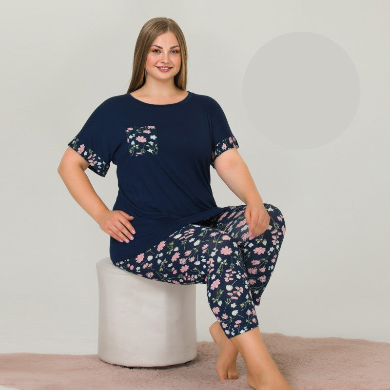Стилна дамска пижама с цветен десен в MAXI размери LY-10642.
