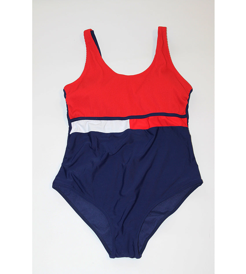 Цял бански с лека подложка без банели Янина. Модел в тъмно синьо и червено. С широка презрамка.
