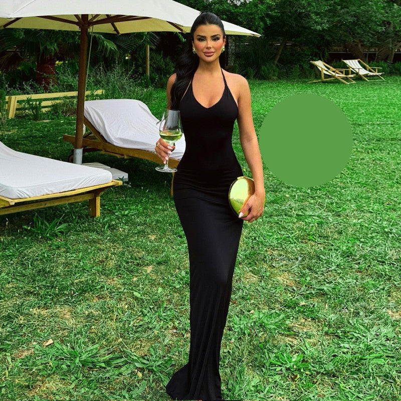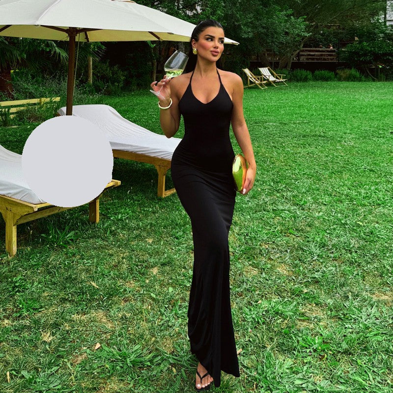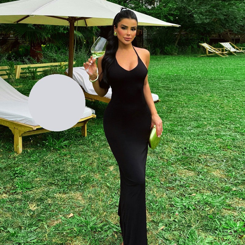 Вечерна черна рокля с гол гръб EO-0987.Обичате ли да привличате погледи, докато се наслаждавате на всяка секунда от Вашето специално събитие? Тогава имаме идеалното предложение за Вас! Нашата елегантна дълга вечерна рокля с гол гръб и халтер деколте е точният избор за жени, желаещи да изразят своя стил и индивидуалност.