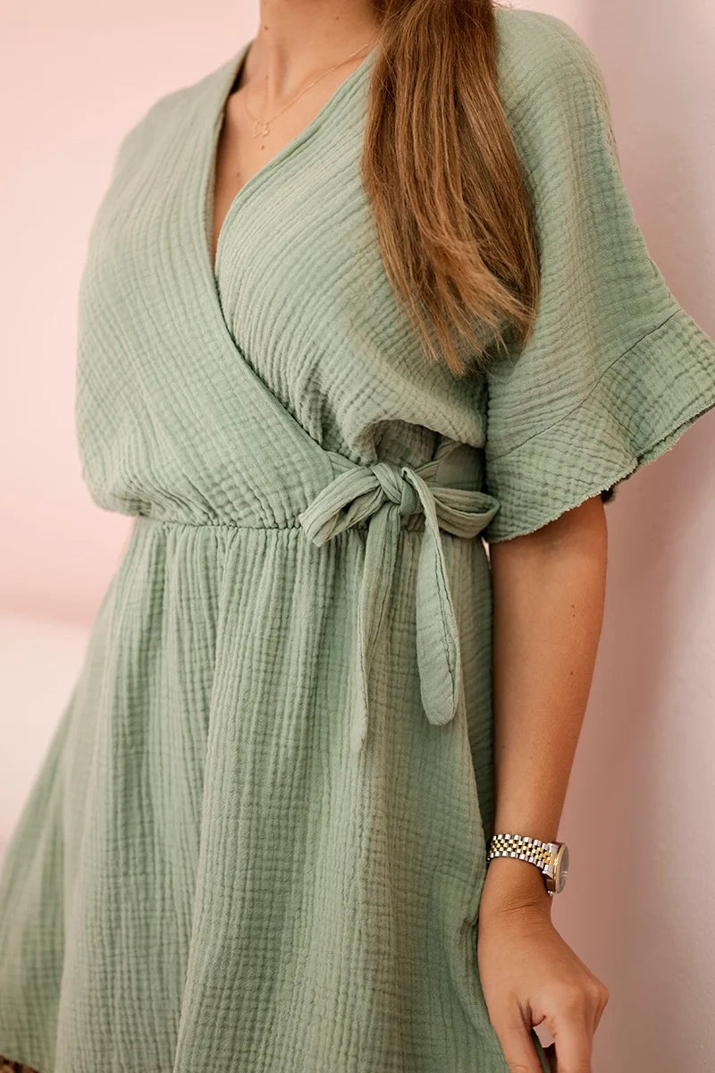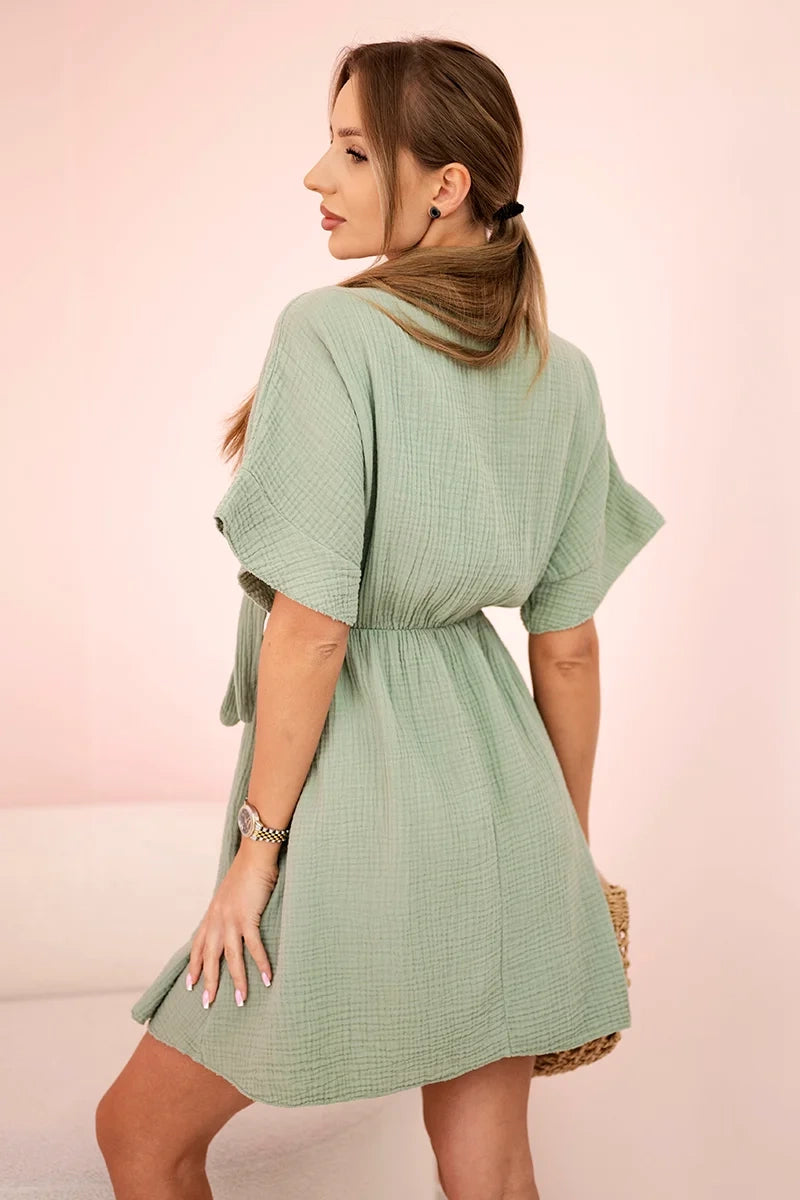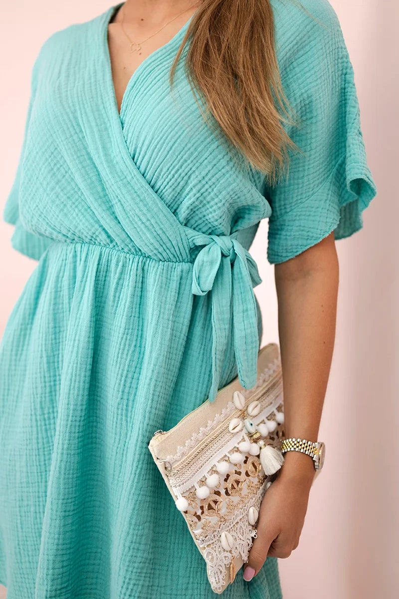 Вталена рокля от муселин е идеалният избор за тези, които искат да съчетаят лекота и женственост в едно. Изработена от деликатен муселин, тази рокля е изключително удобна и ефирна, идеална за топлите дни. Вталената му кройка подчертава фигурата, придава й елегантност и женствен чар. Перфектен за много поводи, от летни разходки до срещи с приятели или романтични срещи. Благодарение на своята гъвкавост и комфорт, вталената рокля от муселин ще се превърне в любим елемент от вашия гардероб. Размерът е универсален и ще бъде подходящ за жени, носещи размер S, M или L.